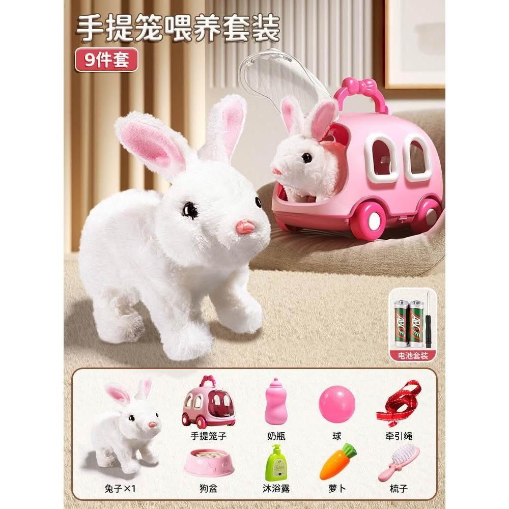 兒童電動仿真小兔子毛絨玩具女孩寵物小白兔玩偶公仔女生生日禮物