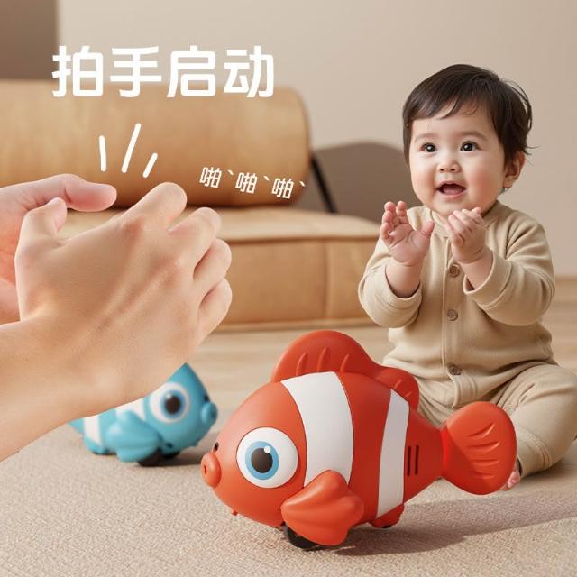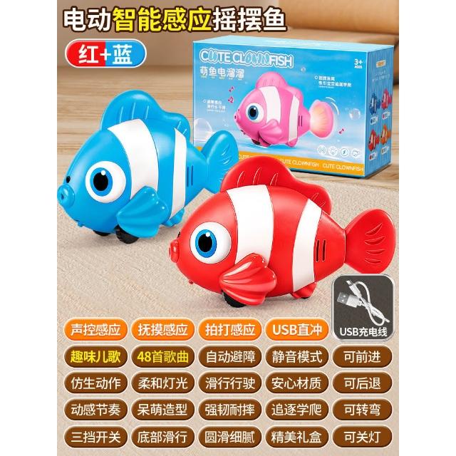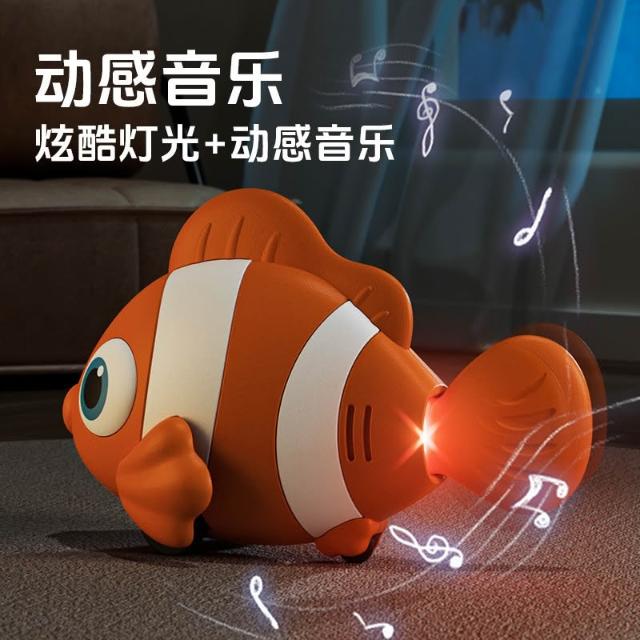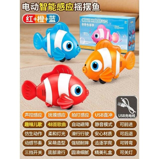 電動仿真魚自動感應躲避小丑魚搖擺會動益智動物學爬追逐兒童玩具