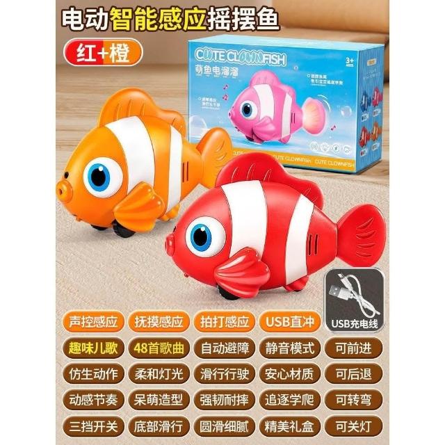 電動仿真魚自動感應躲避小丑魚搖擺會動益智動物學爬追逐兒童玩具
