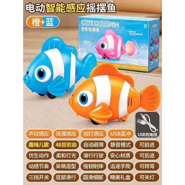 電動仿真魚自動感應躲避小丑魚搖擺會動益智動物學爬追逐兒童玩具