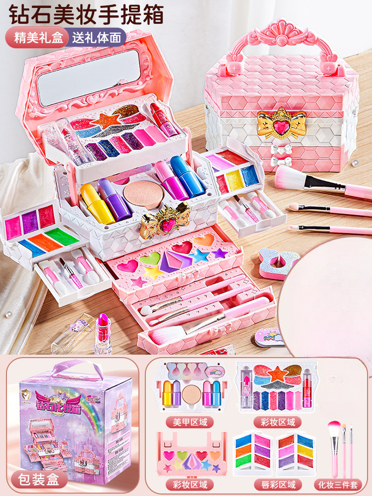 新款兒童化妝品手提箱玩具兒童女孩子小公主彩妝禮盒套裝生日禮物