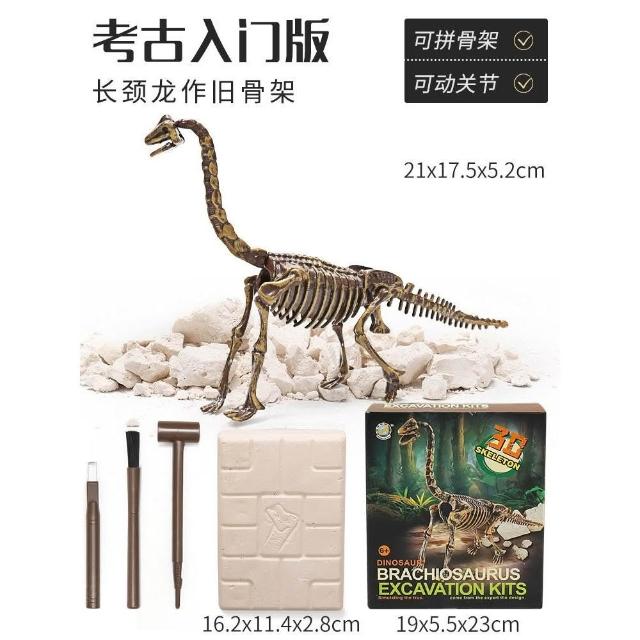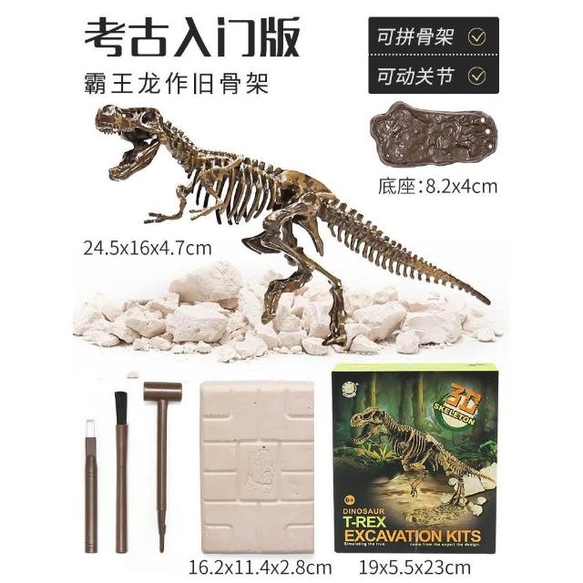 兒童仿真恐龍考古化石玩具益智挖掘動物軟骨架模型拼接男孩霸王龍