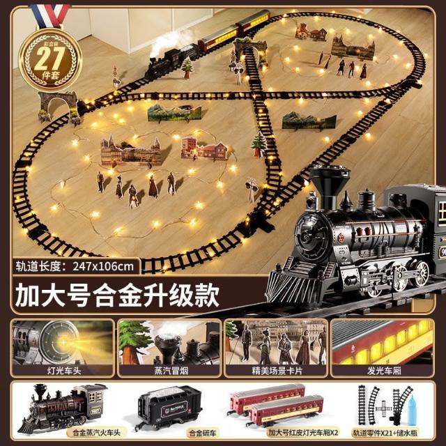 電動小火車軌道車仿真復古蒸汽火車模型兒童高鐵玩具男孩套裝送禮