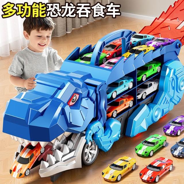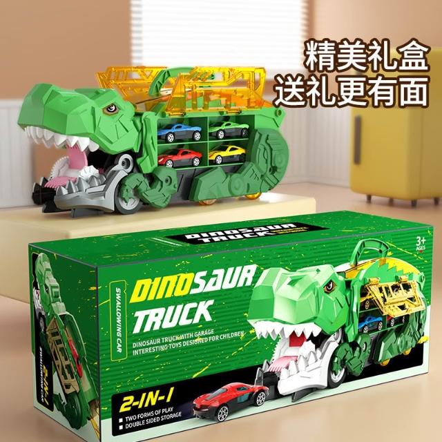 兒童吞食恐龍玩具車霸王龍變形軌道男孩益智收納滑行車合金小汽車