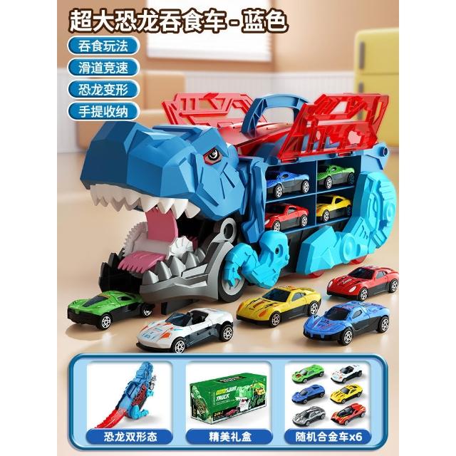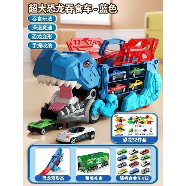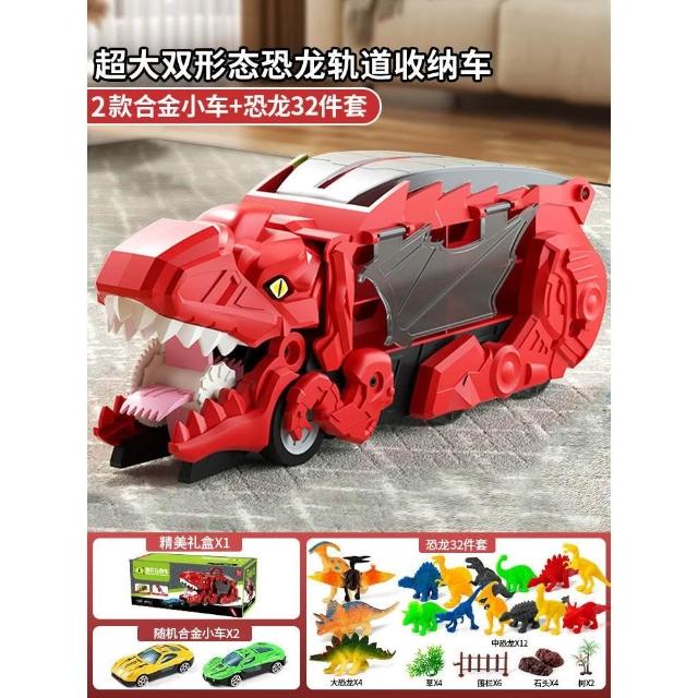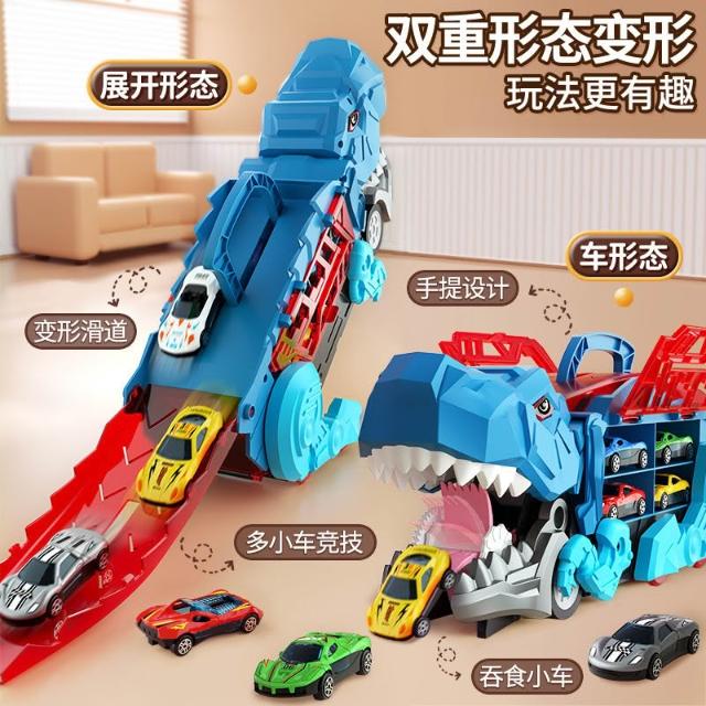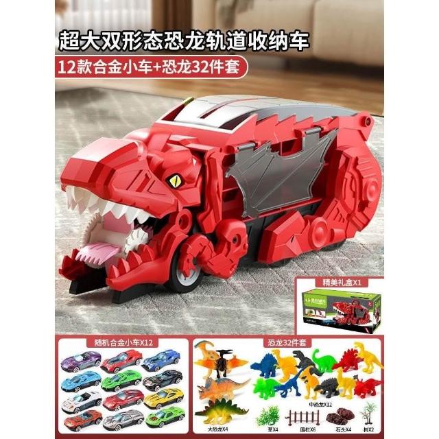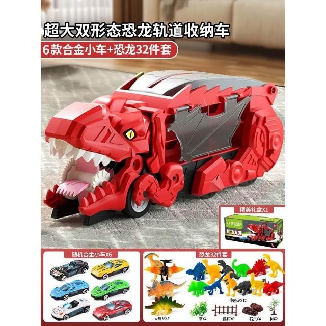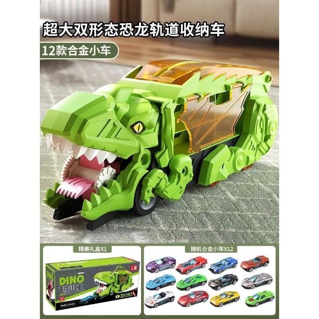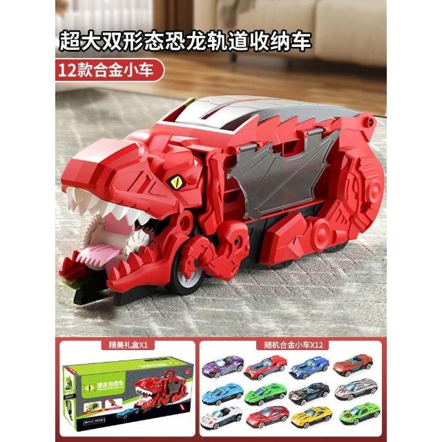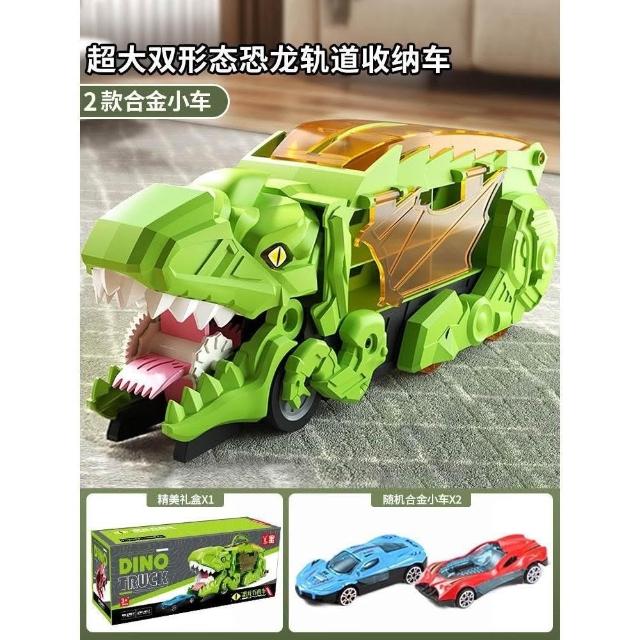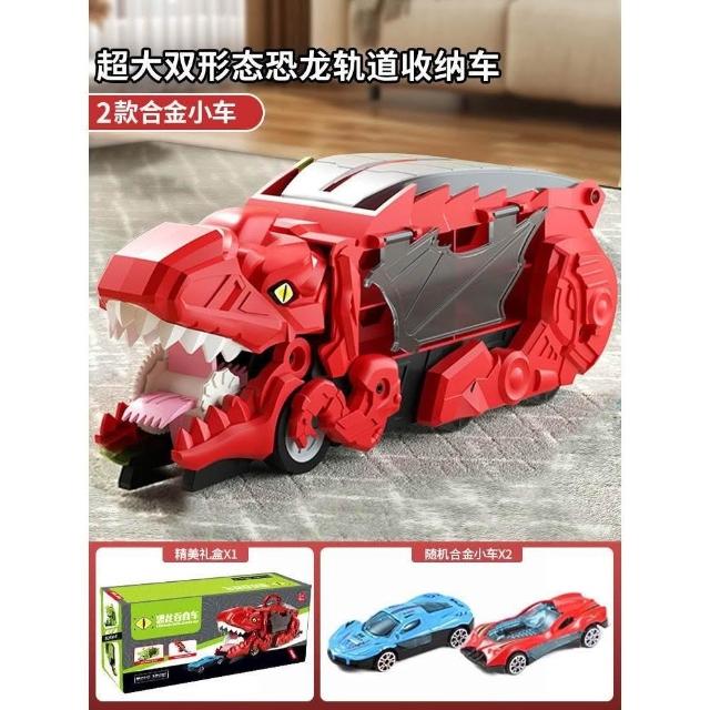 兒童吞食恐龍玩具車霸王龍變形軌道男孩益智收納滑行車合金小汽車