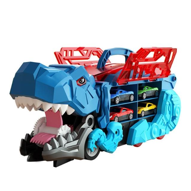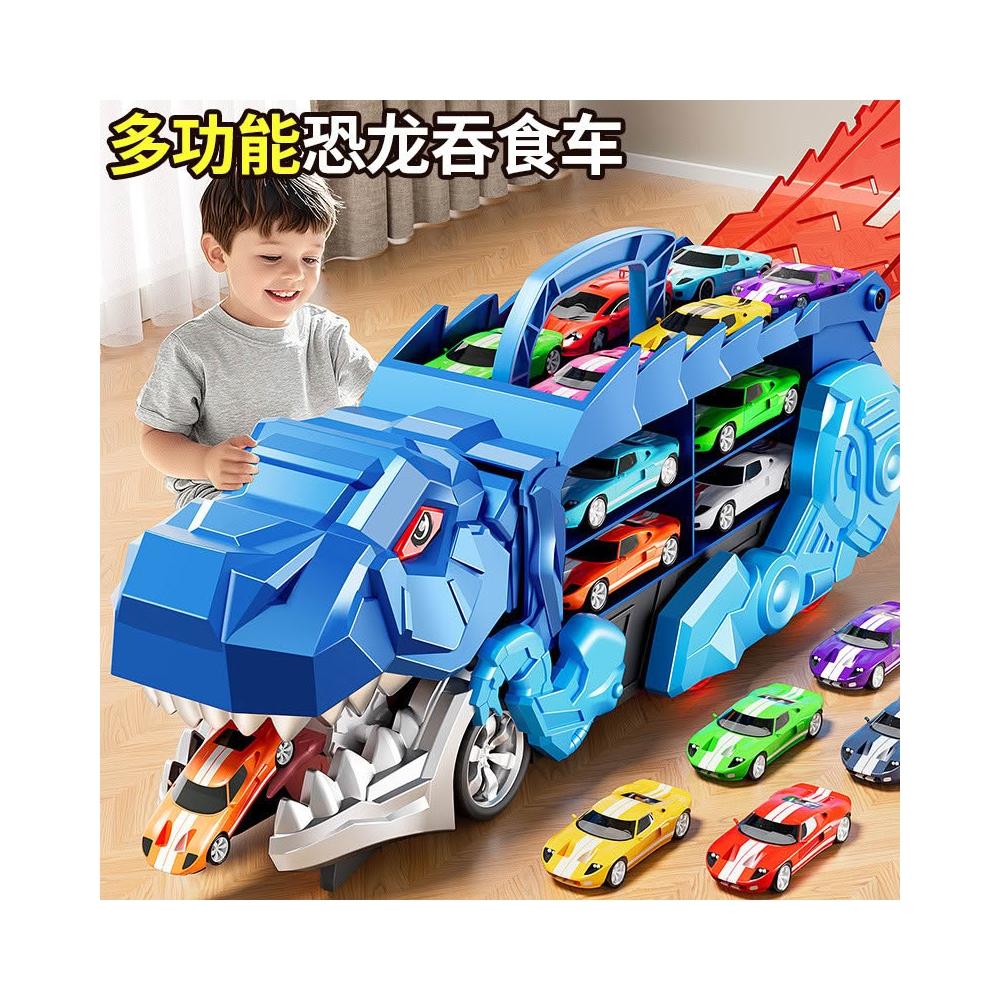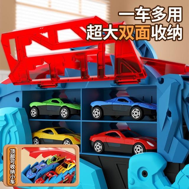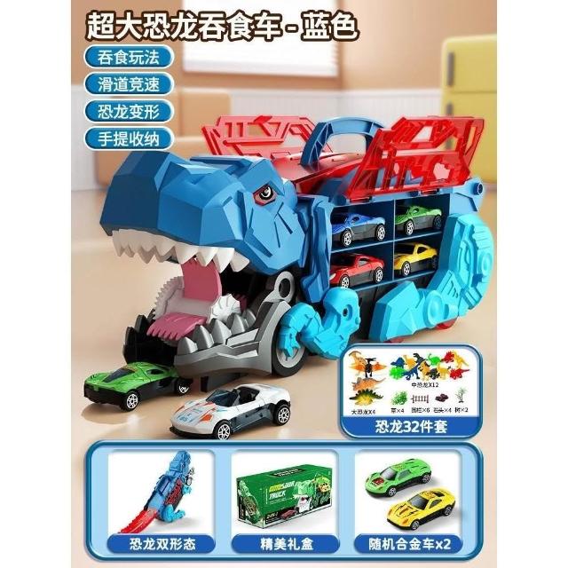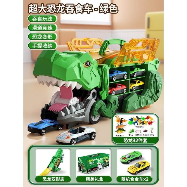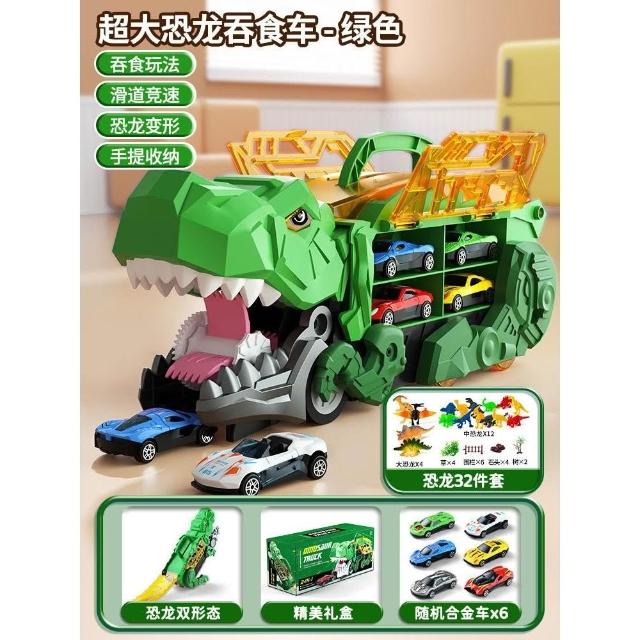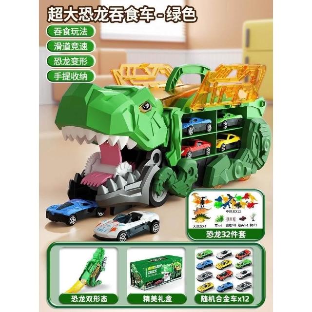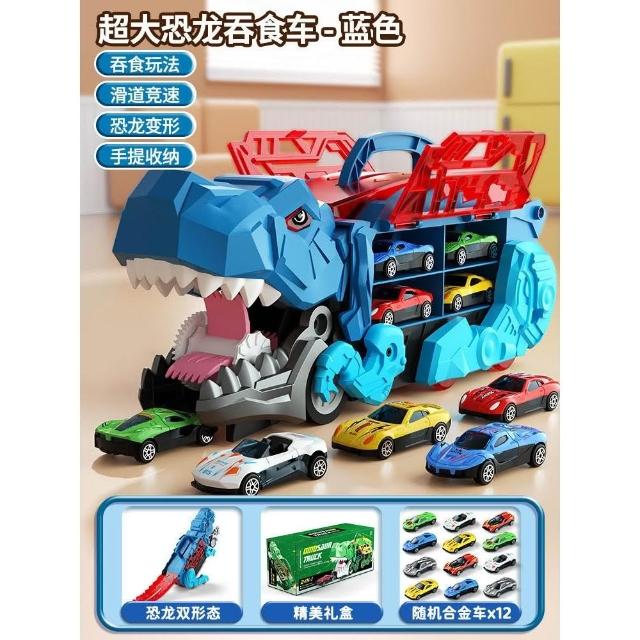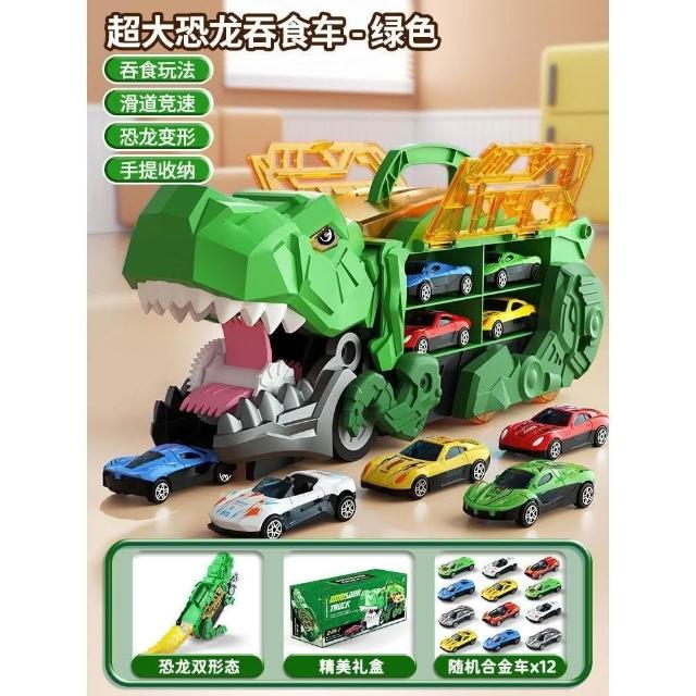 兒童吞食恐龍玩具車霸王龍變形軌道男孩益智收納滑行車合金小汽車