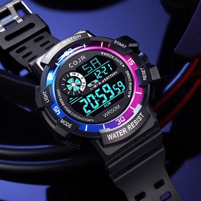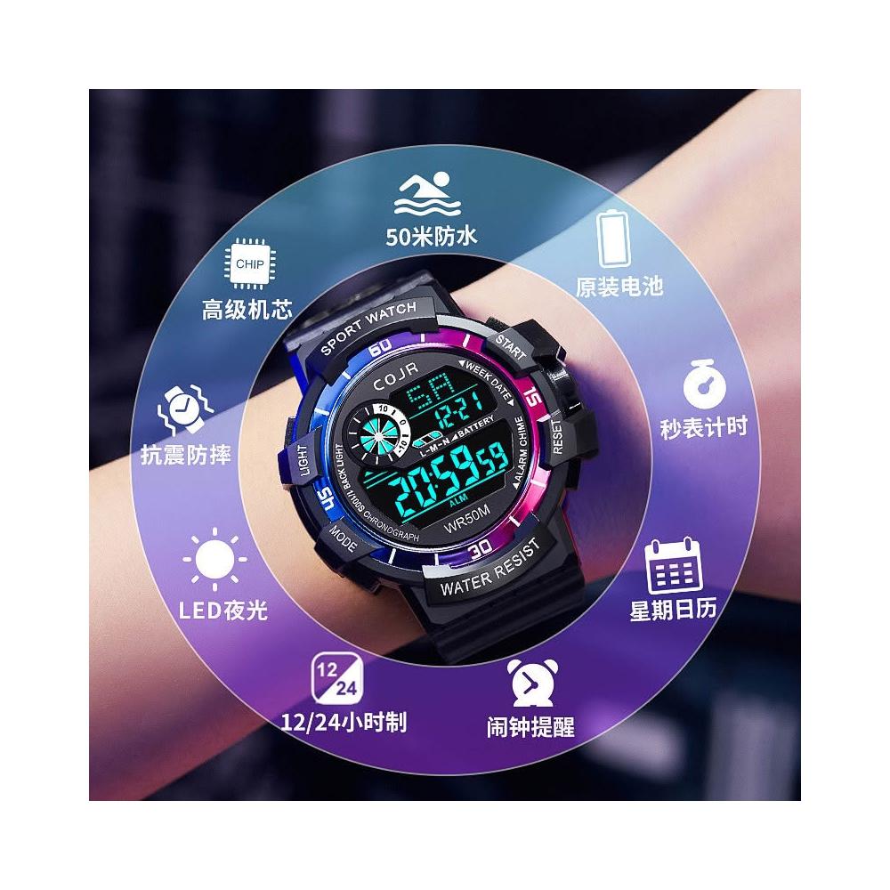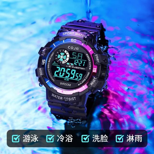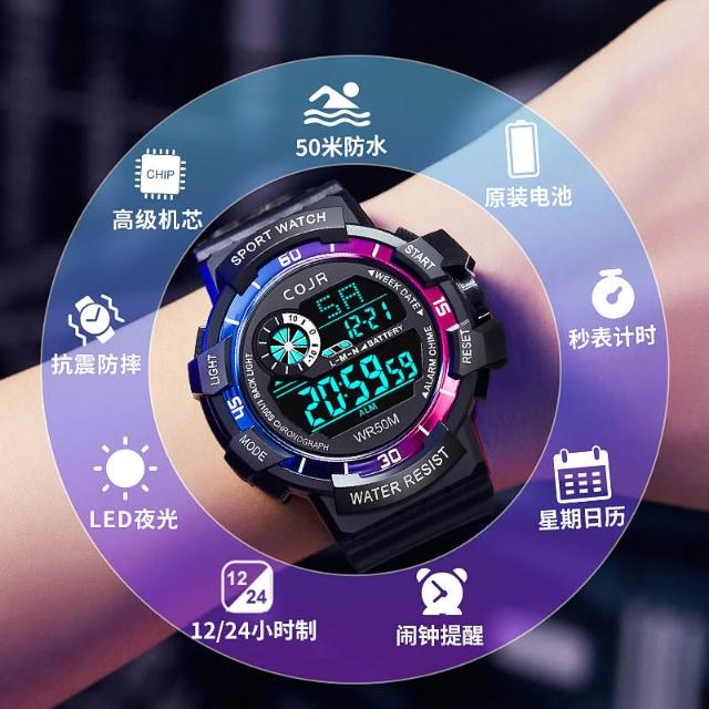 cojr正版多功能兒童電子手錶學生夜光防水黨電子表批發大錶盤