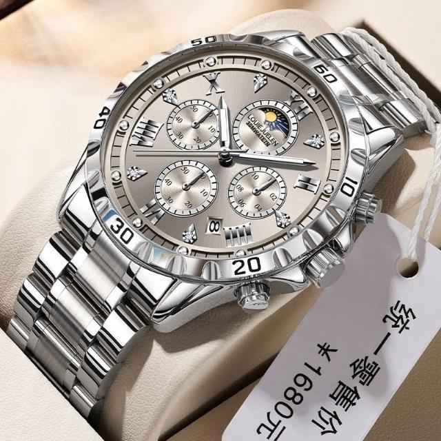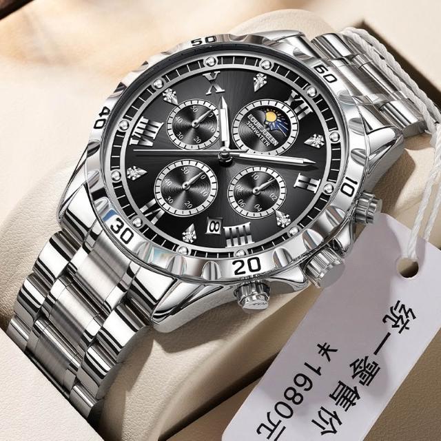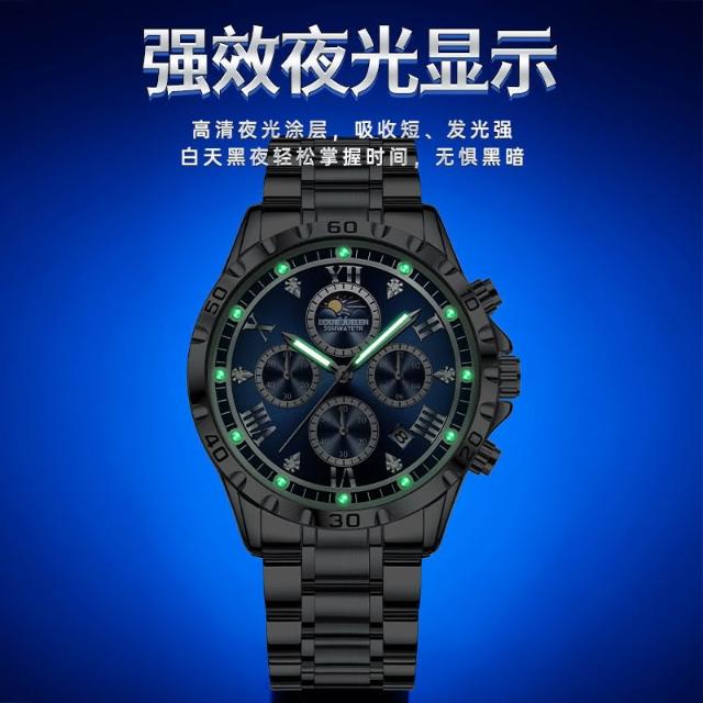 2025新款男士手錶石英表多功能錶盤防水潮流時尚商務腕錶一件代發