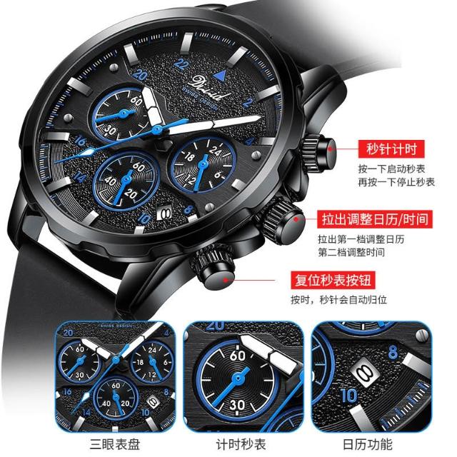 帝茲品牌跨境新款外貿鋼帶男士手錶全自動非機械防水夜光石英表