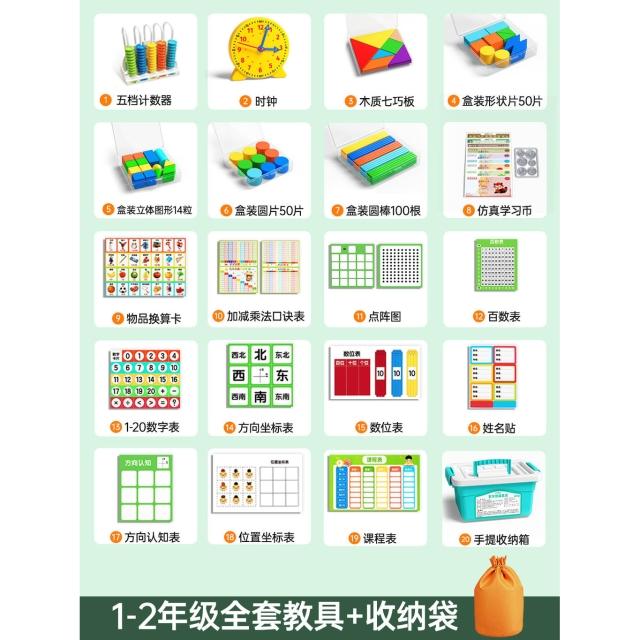 一年級數學教具立體幾何圖形計數器數棒算盤小學生人教版全套學具