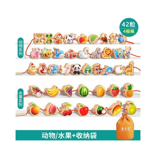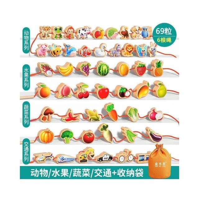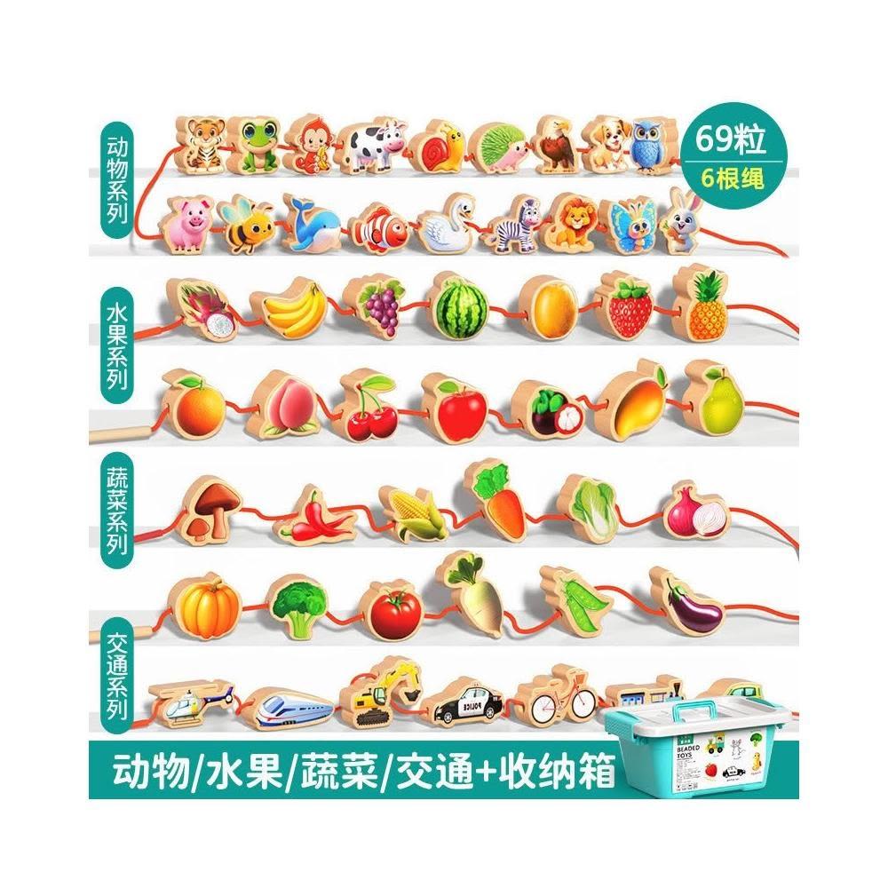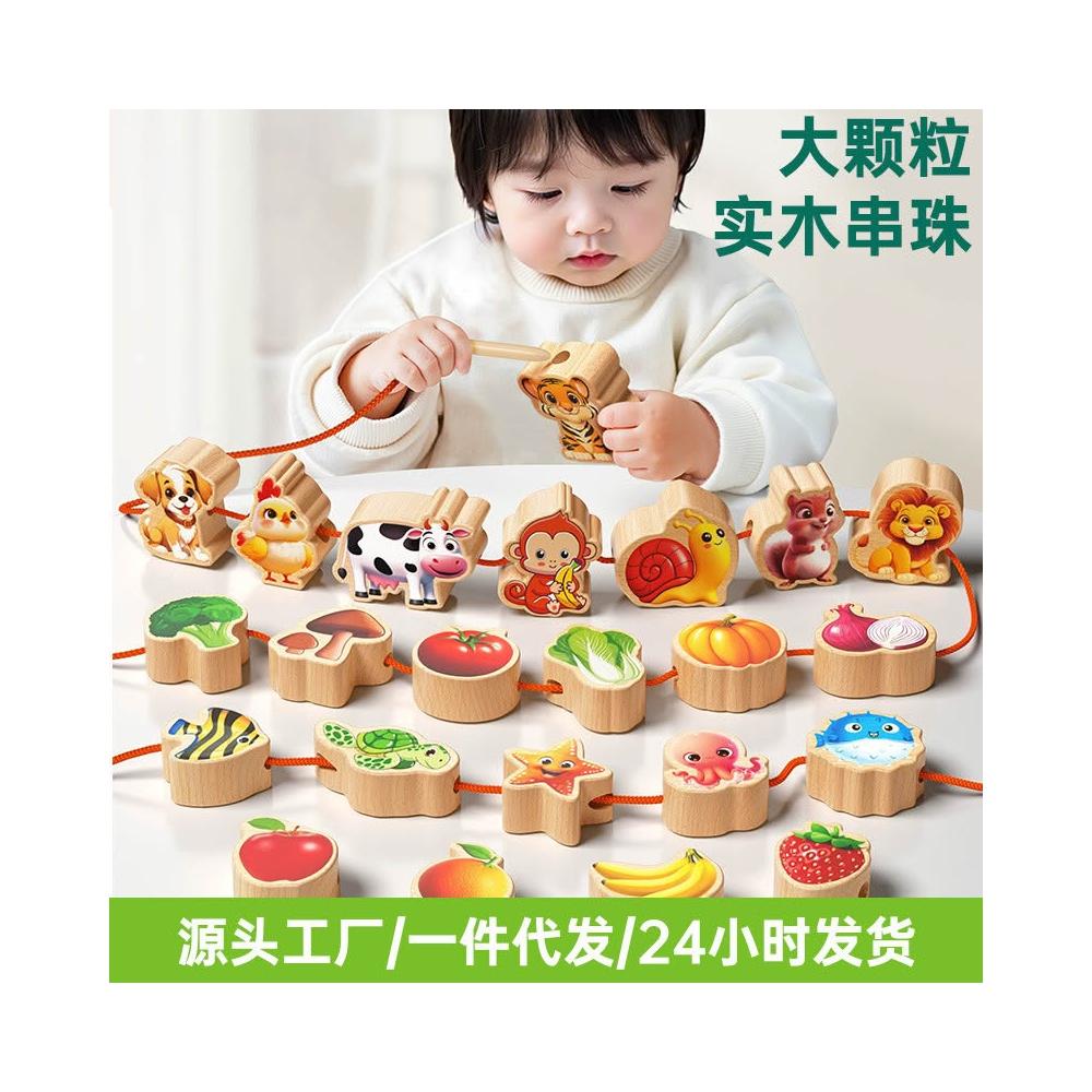 兒童實木串珠益智玩具早教穿線0到3歲寶寶精細動作專注力訓練教具