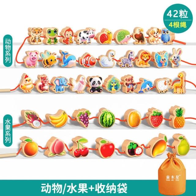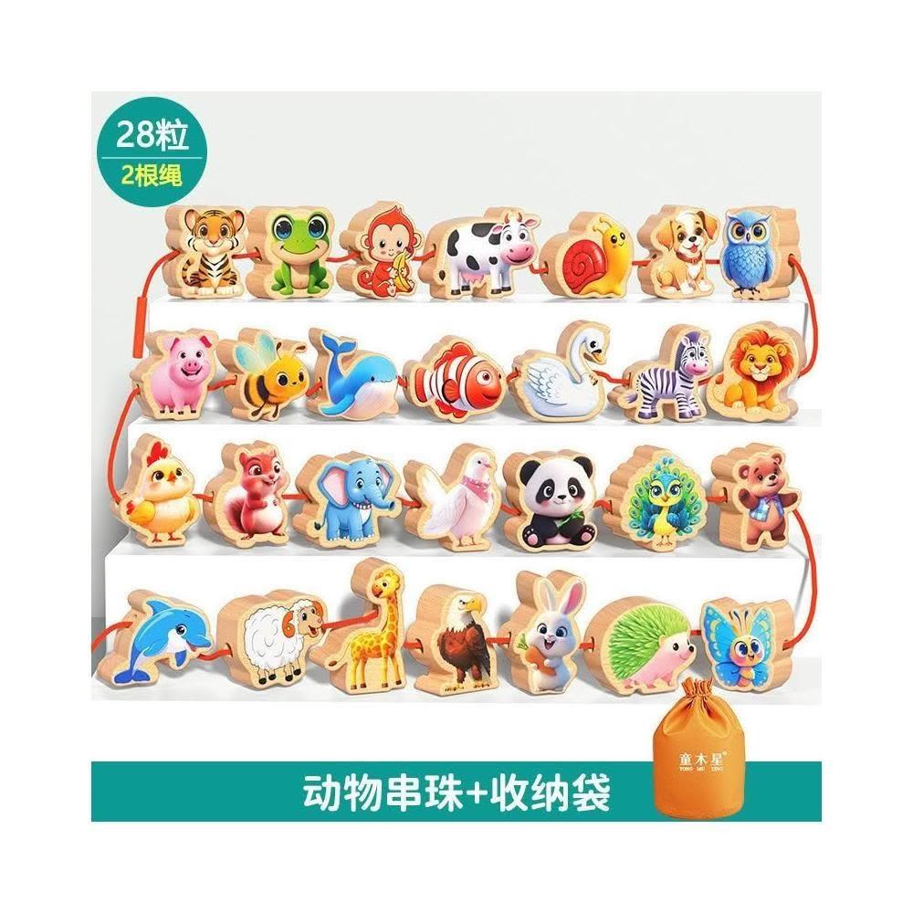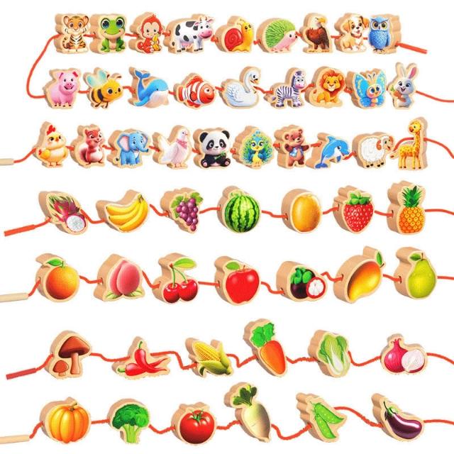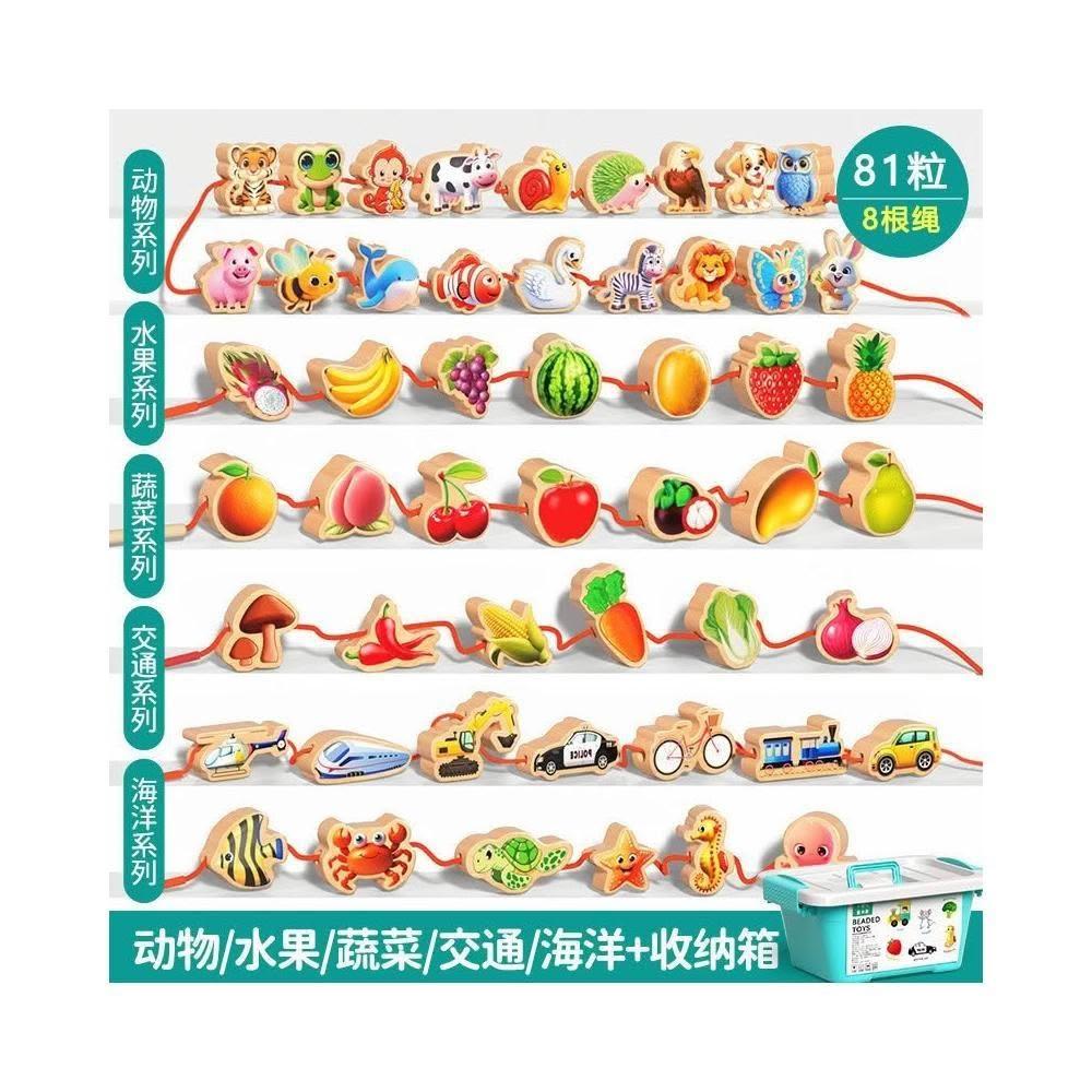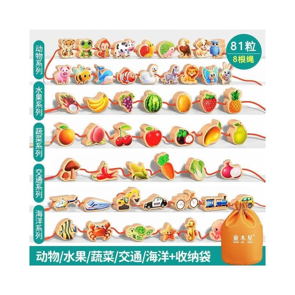 兒童實木串珠益智玩具早教穿線0到3歲寶寶精細動作專注力訓練教具