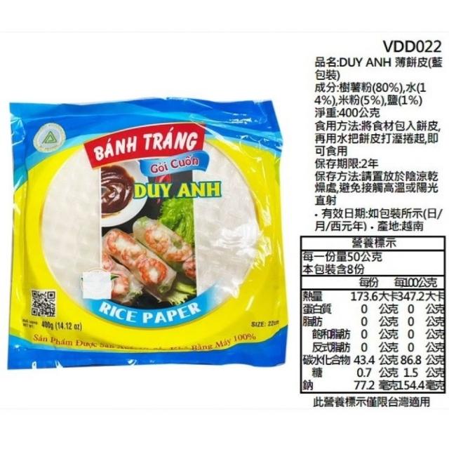 DUY ANH 涼拌用薄春卷皮400g/包) U(越南