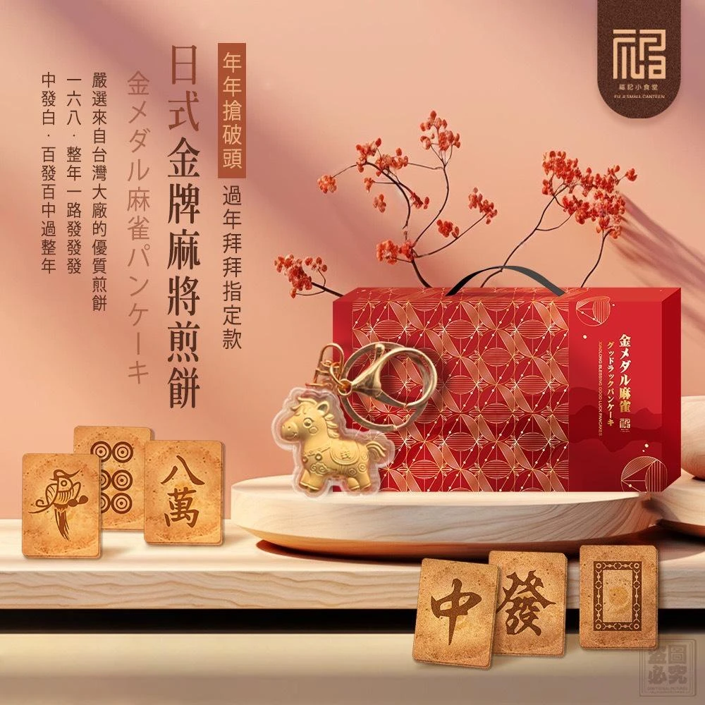 2026日式麻將煎餅手提餅禮盒(麻將煎餅混搭10片+招財小馬鑰匙圈)