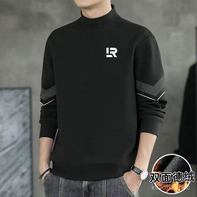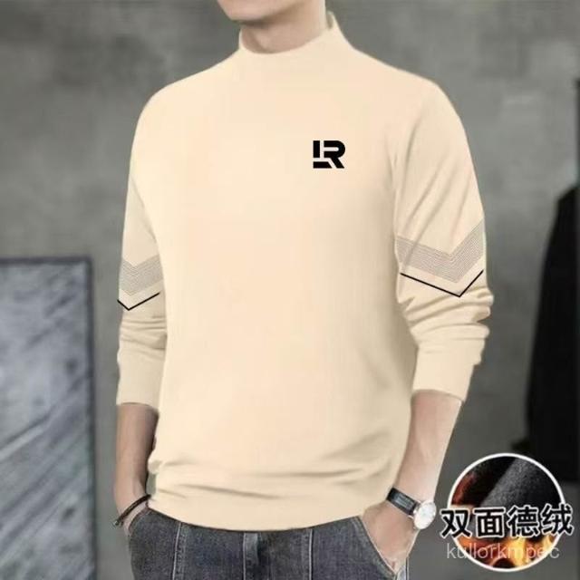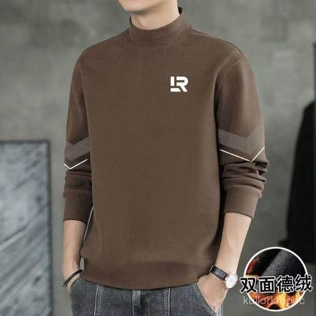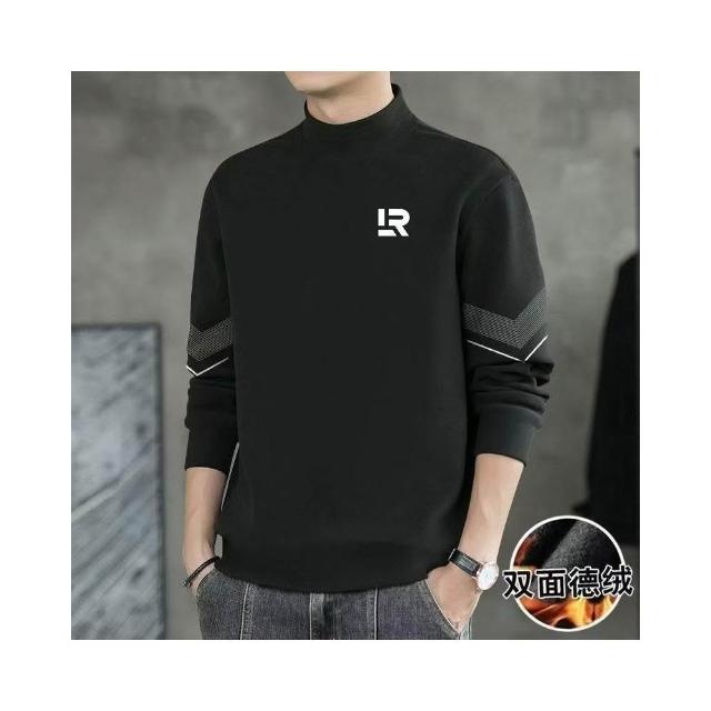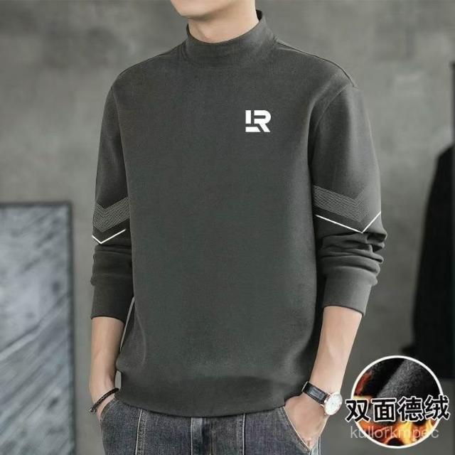 雙麵絨長袖t恤男半高領打底衫加絨加厚秋冬純色秋衣德絨打底衫男