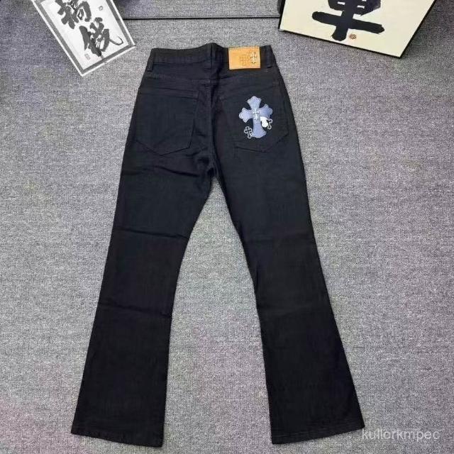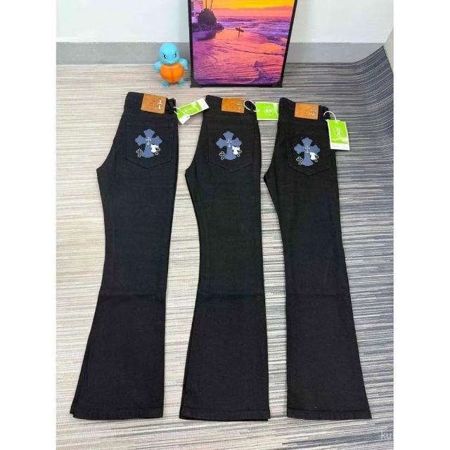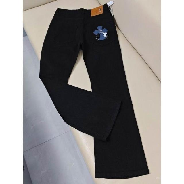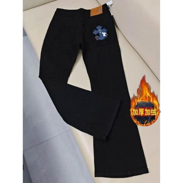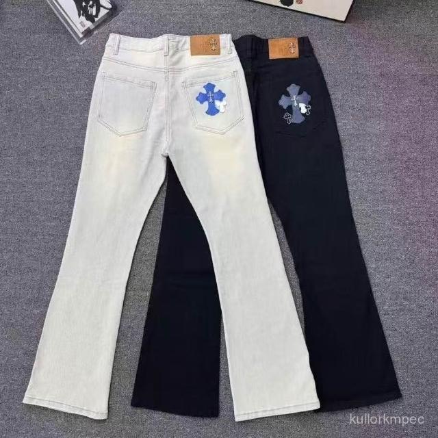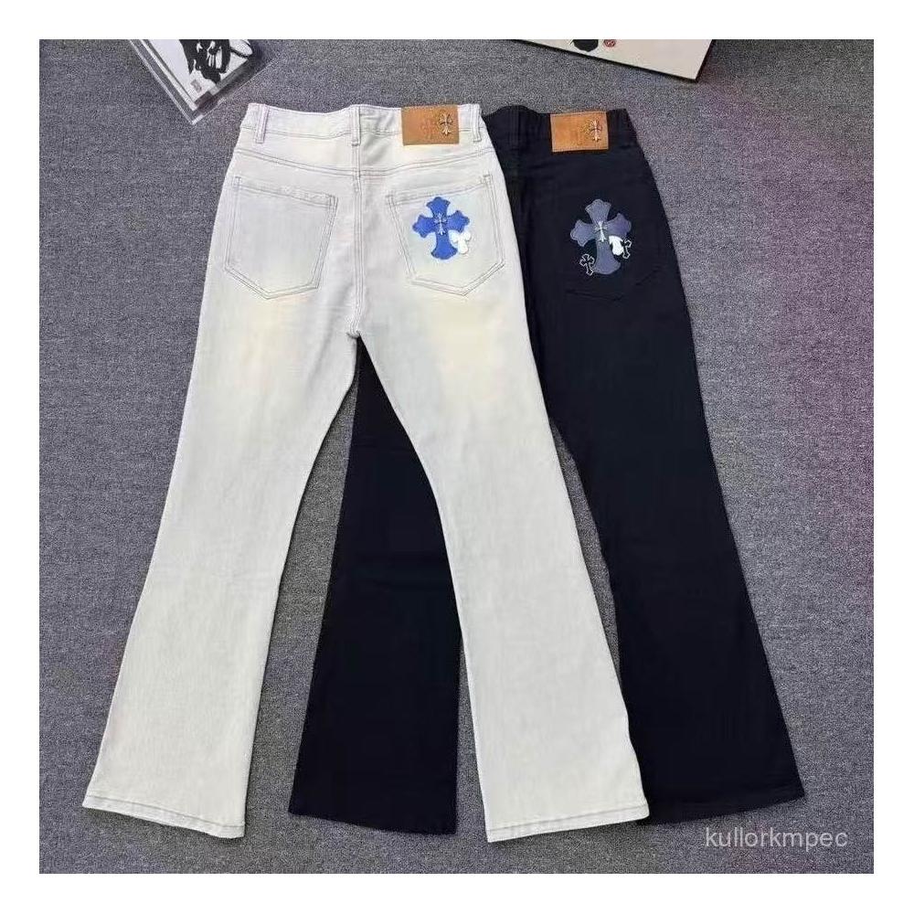 彬彬甄選 美式印花克羅貼皮十字架牛仔褲潮牌高街男女水洗加絨直筒長褲子