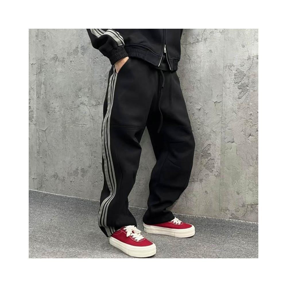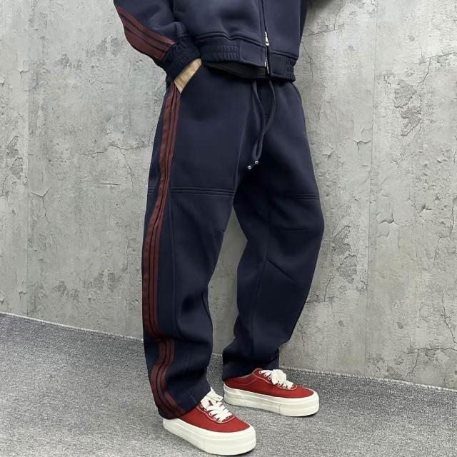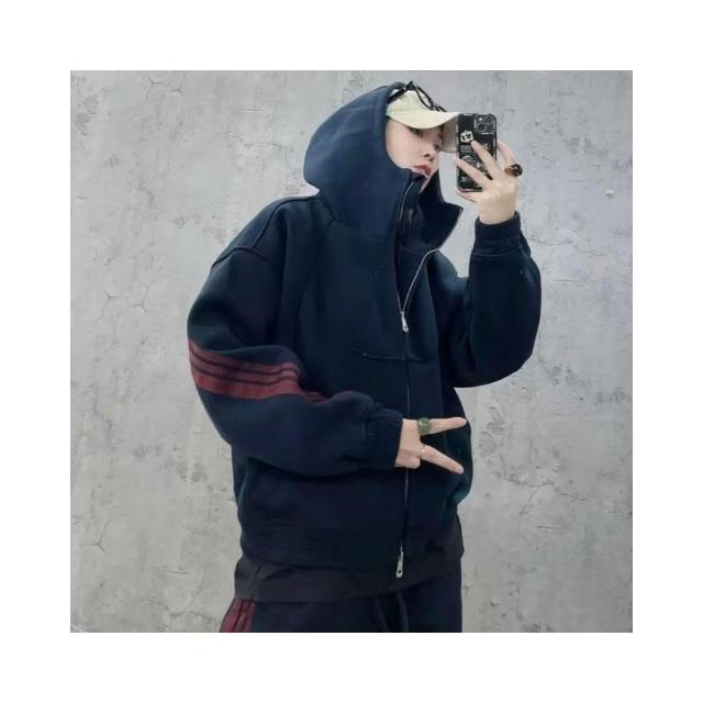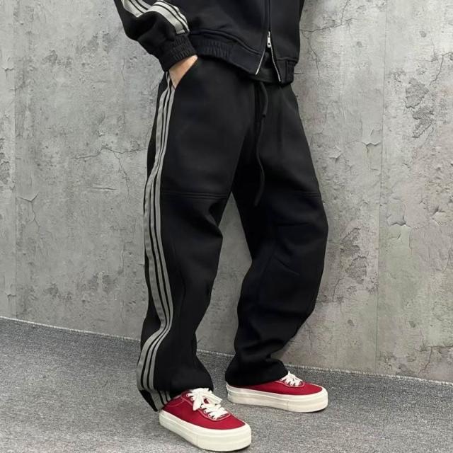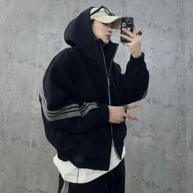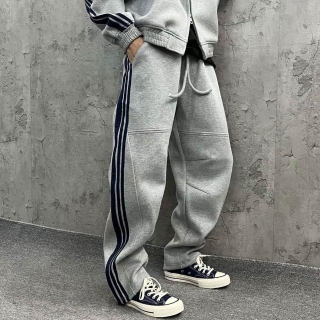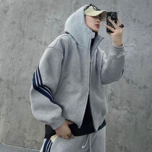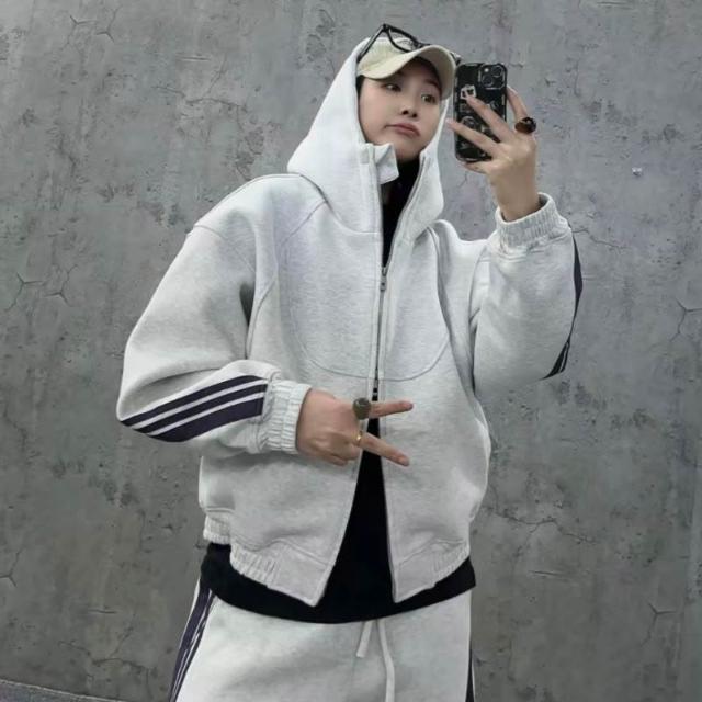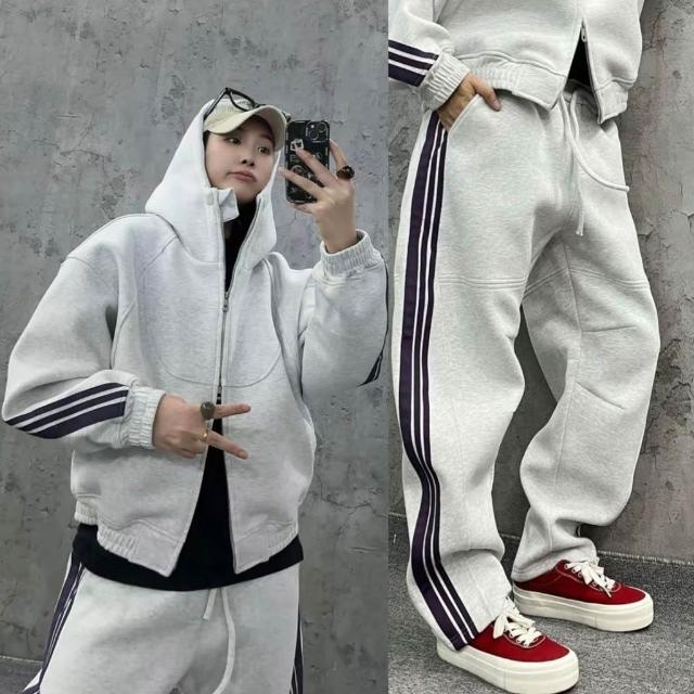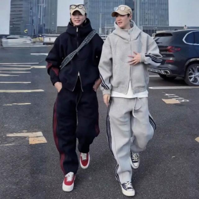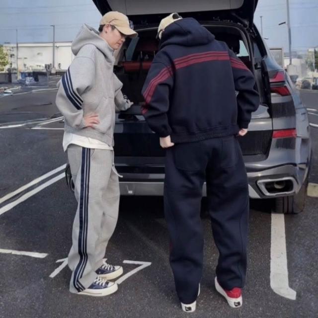 秋季潮牌重磅針織三條槓休閒運動套裝情侶同款連帽衛衣衛褲兩件套