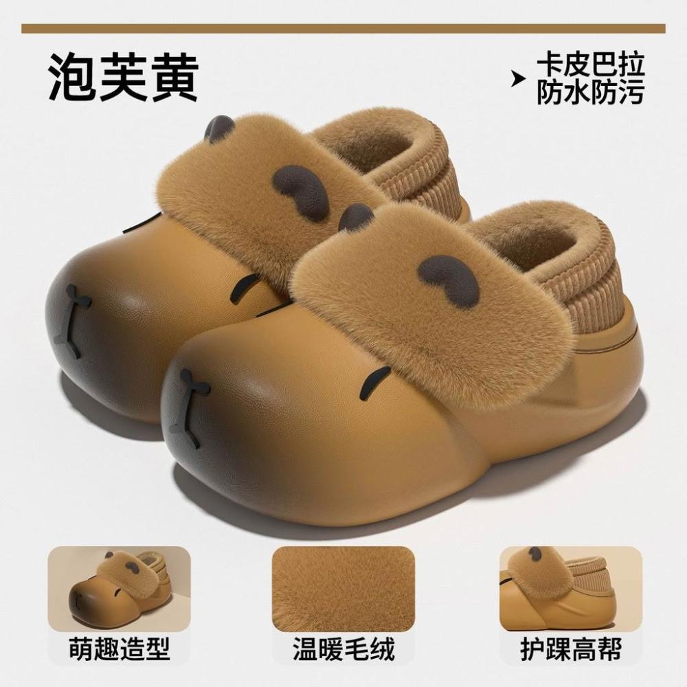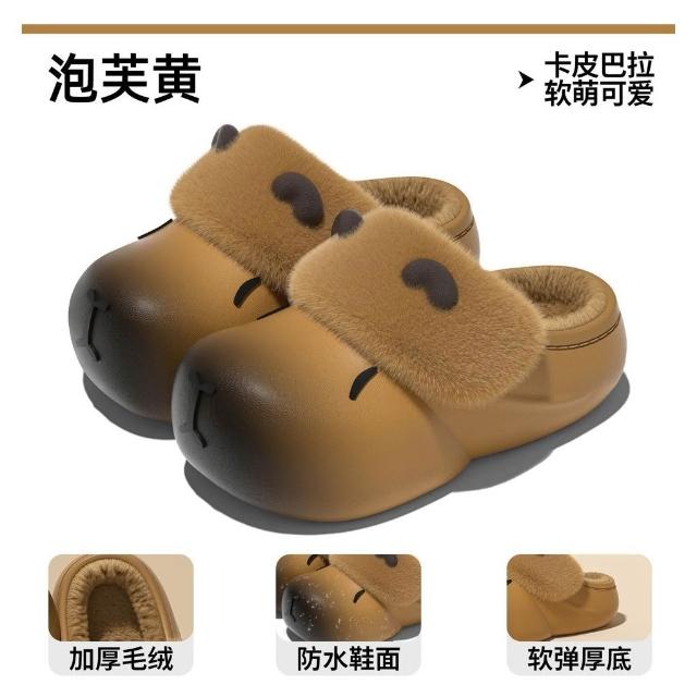 萌趣卡皮巴拉兒童棉拖鞋女冬季新款居家室內防滑外穿保暖親子棉拖