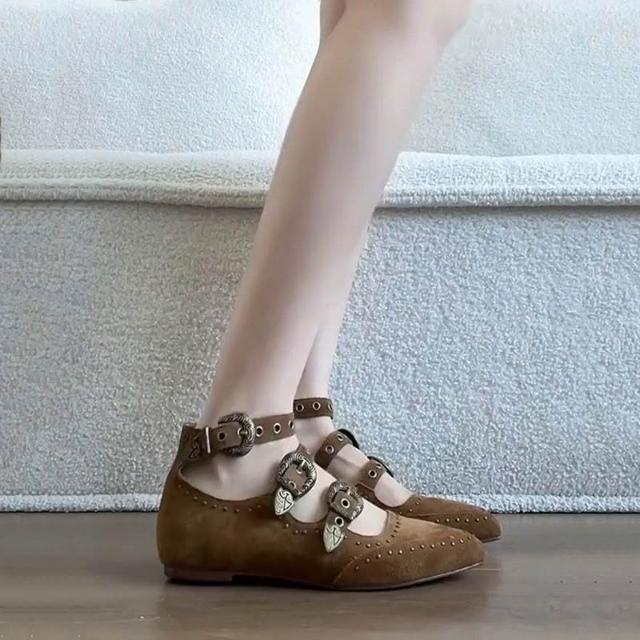 軟皮版超火瑪麗珍鞋女朋克風尖頭鉚釘皮帶扣內增高5cm巨好看單鞋