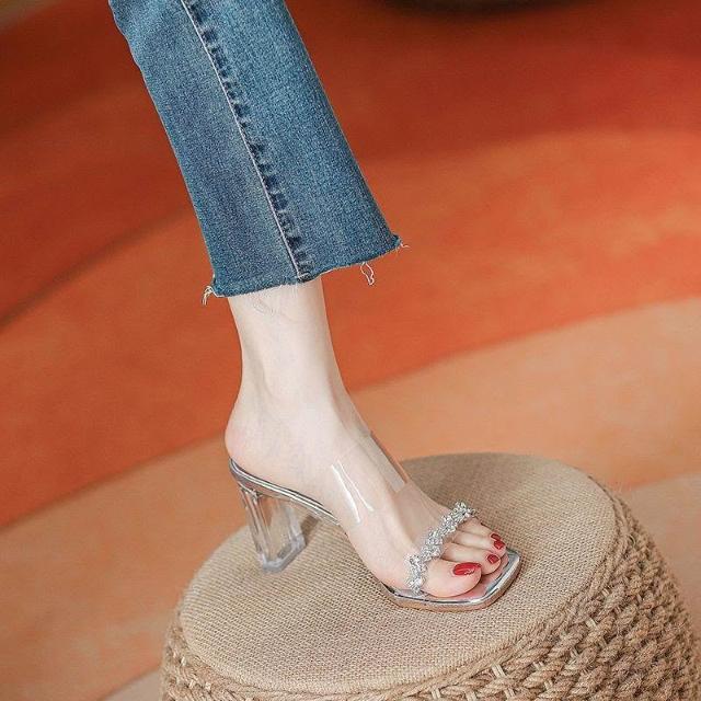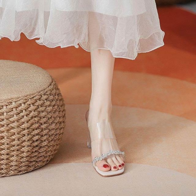 彬彬甄選專櫃品質2024夏季新款氣質女鞋水晶涼鞋仙女風一字帶外透明拖鞋