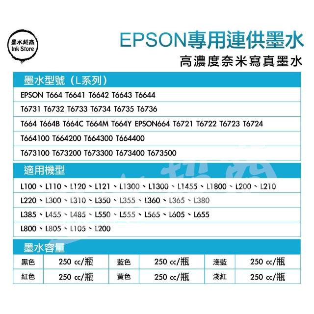 EPSONT6641墨水/T6642墨水/T6643墨水/T6644 250cc 副廠墨水T664M/T664Y 墨水超商