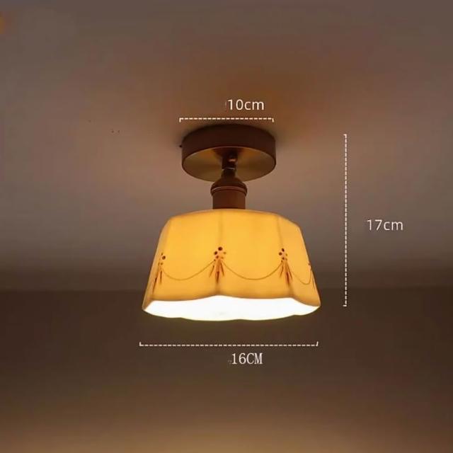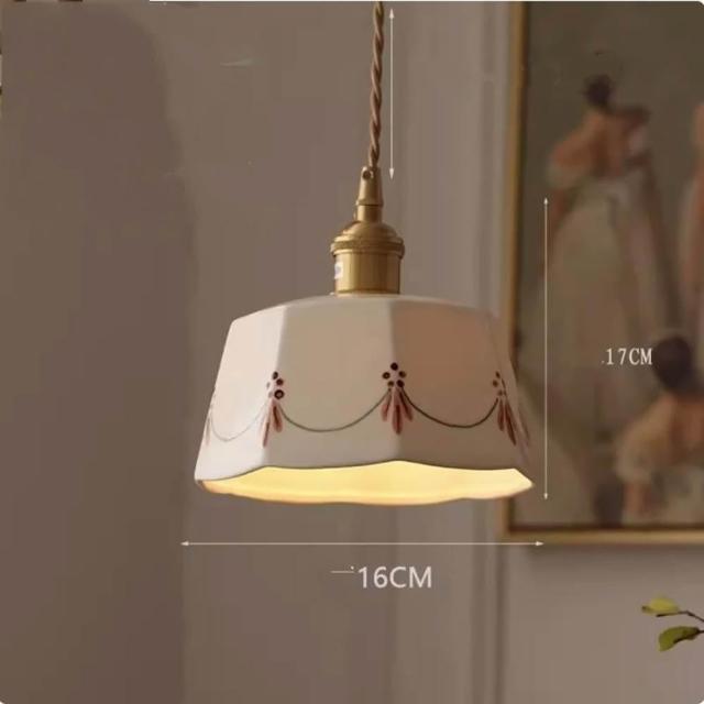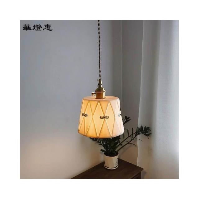 華燈惠 吊燈日式復古黃銅釉面印花陶瓷吊燈簡約臥室床頭餐廳吧台玄關飄窗燈具