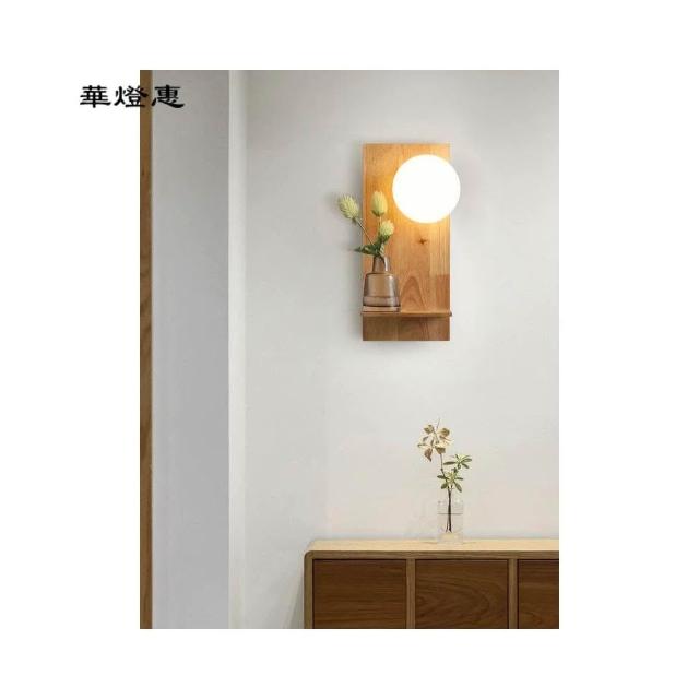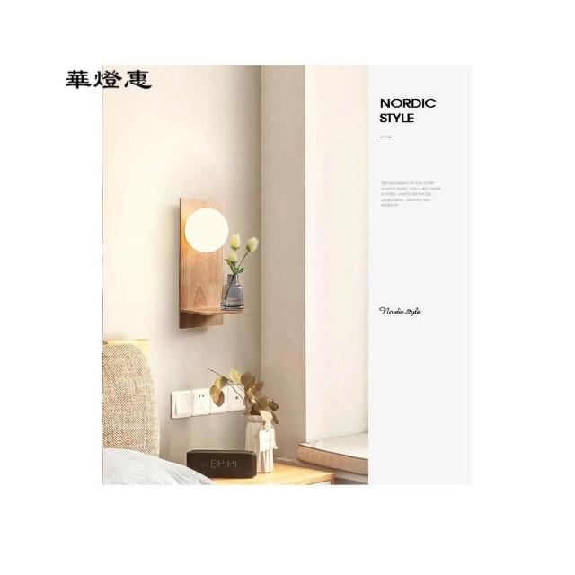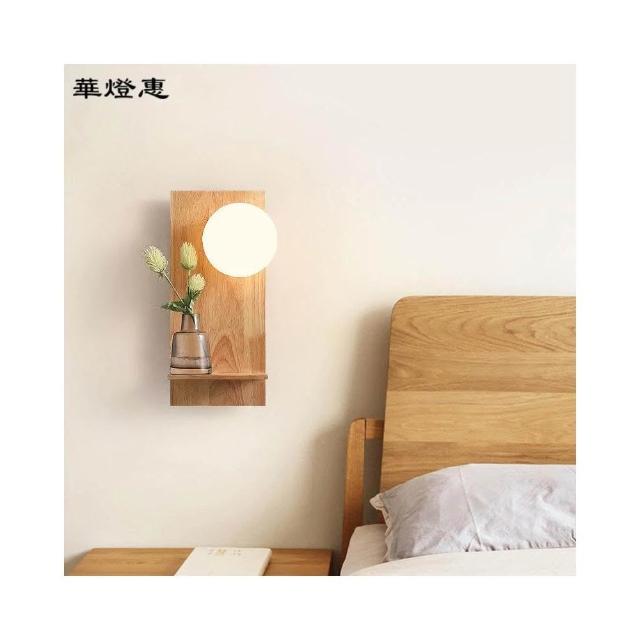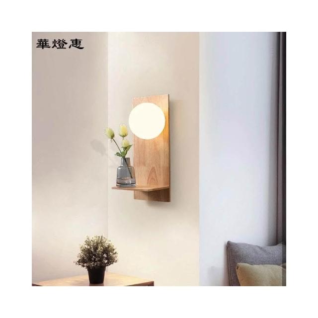 華燈惠 壁燈北歐簡約床頭LED壁燈牆壁裝潢燈創意飯店家居實木置物架過道壁燈