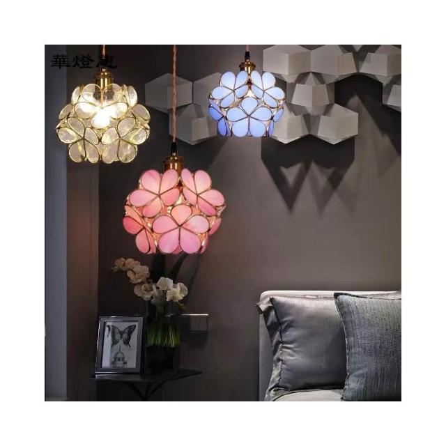 華燈惠 日式簡約手工玻璃少女心花瓣吊燈臥室床頭餐廳咖啡廳玄關過道酒櫃女童房吊燈網紅民宿吊燈
