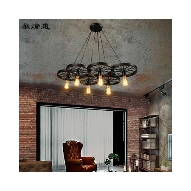 華燈惠 吊燈工業風復古工業風愛迪生燈泡餐廳吧台咖啡廳美式鄉村田園茶樓服裝店网咖鐵藝車輪吊燈