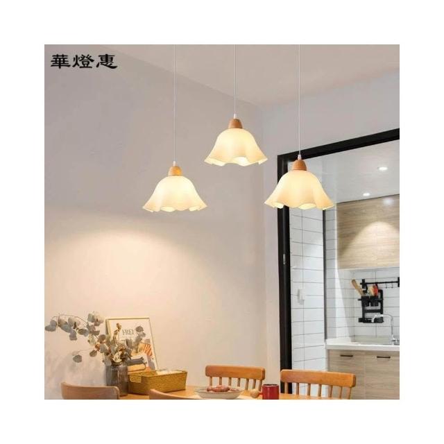 華燈惠 餐廳吊燈現代簡約網紅創意花朵原木風吧台餐桌燈日式床頭小吊燈