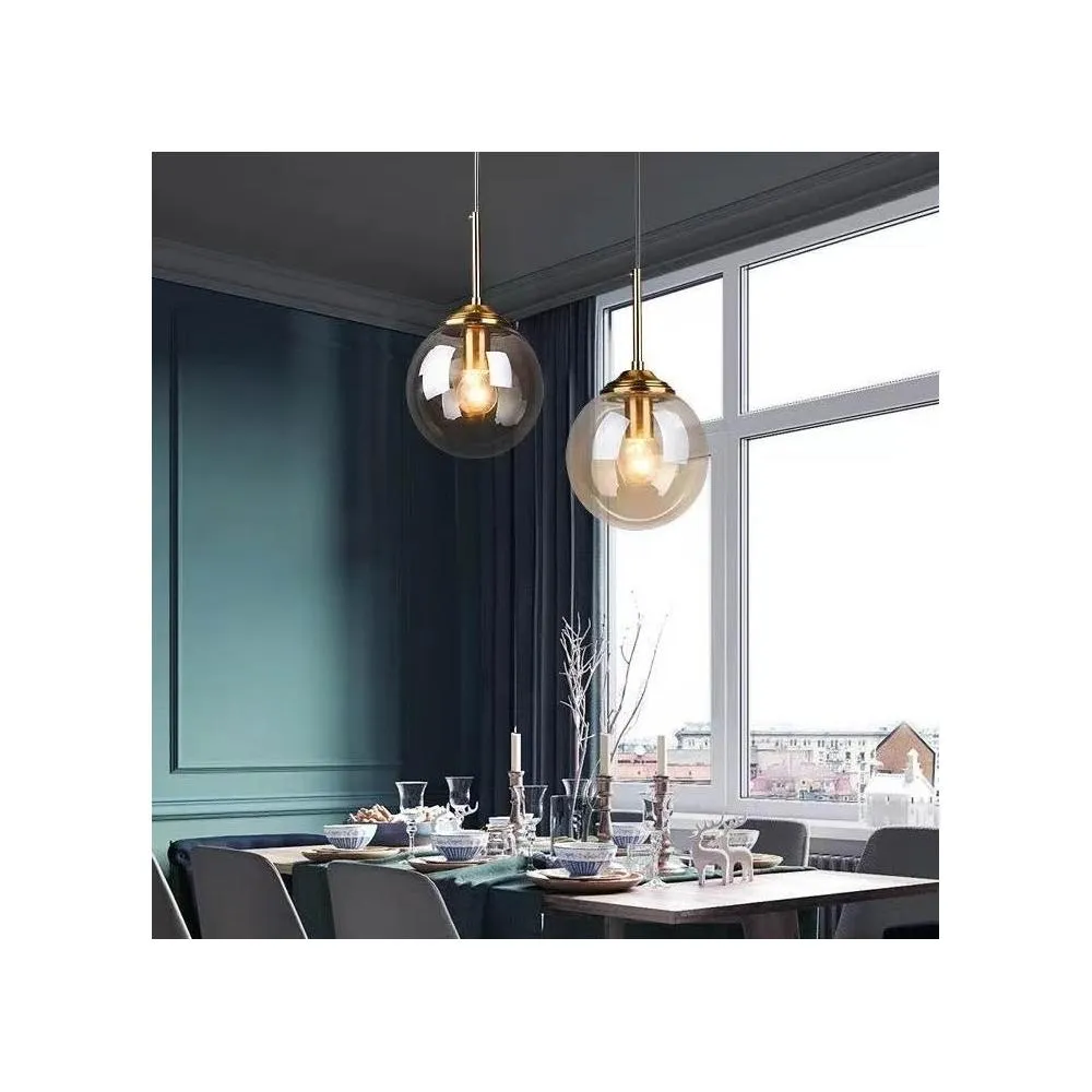 華燈惠 餐廳玻璃球吊燈 led吊燈北歐創意餐吊燈 煙灰琥珀玻璃多頭吊燈 餐廳吧台會所時尚球燈 居家吊燈 吸頂燈