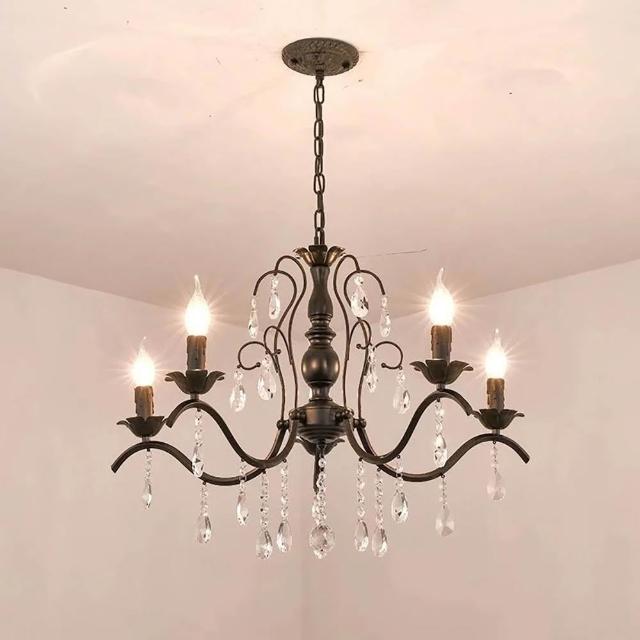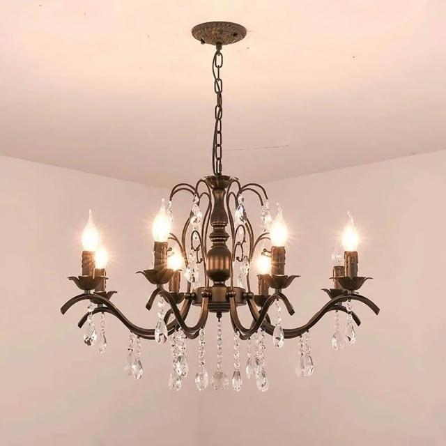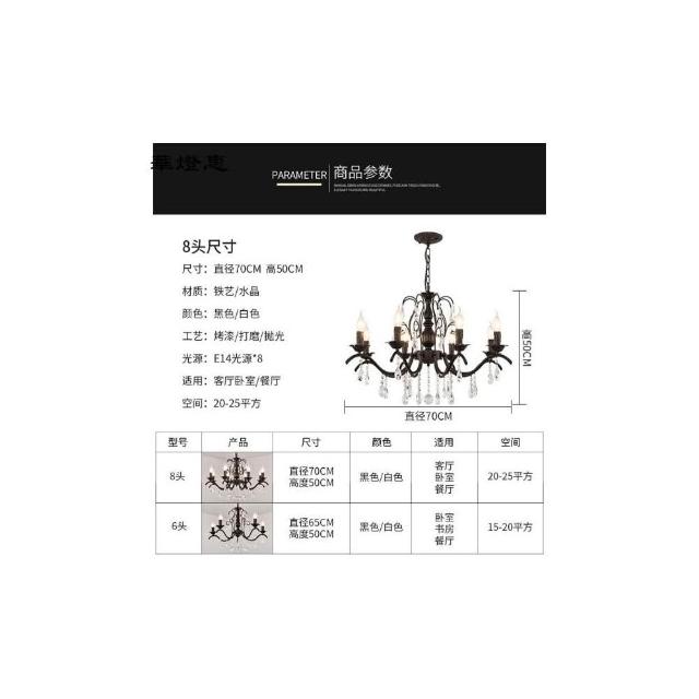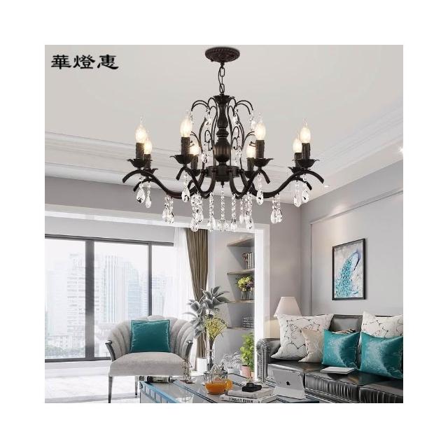 華燈惠 美式水晶吊燈餐吊燈簡約餐廳客廳臥室燈後現代輕奢鐵藝蠟燭服裝店燈具