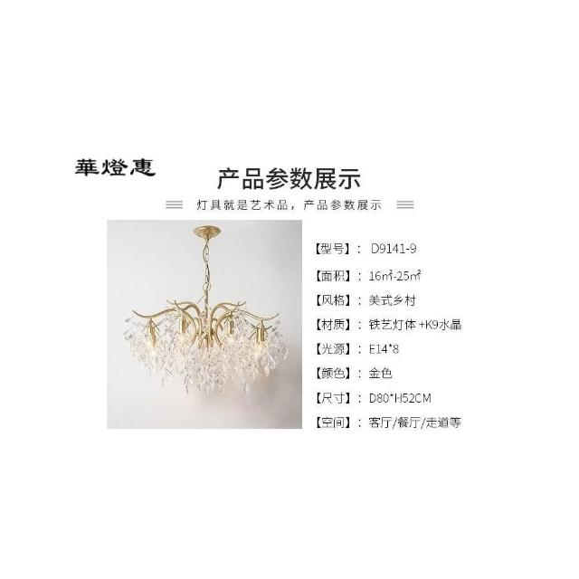 華燈惠 美式水晶吊燈客廳燈金色家用現代簡約歐式餐廳大廳臥室輕奢水晶燈吊燈