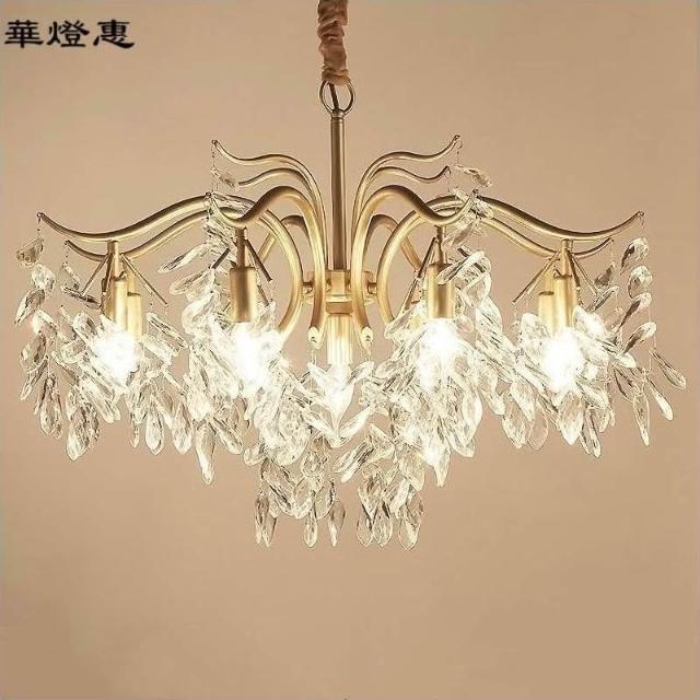 華燈惠 美式水晶吊燈客廳燈金色家用現代簡約歐式餐廳大廳臥室輕奢水晶燈吊燈