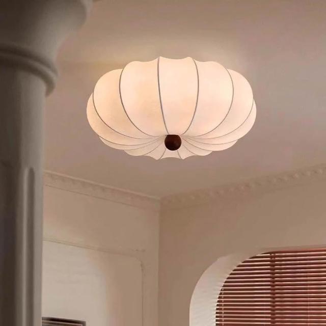 華燈惠 法式中古風吸頂燈 奶油風燈飾 仿蠶絲燈罩溫馨客廳燈 臥室浪漫燈具復古高級感燈飾法式簡約吊燈設計師推薦日式詫寂風