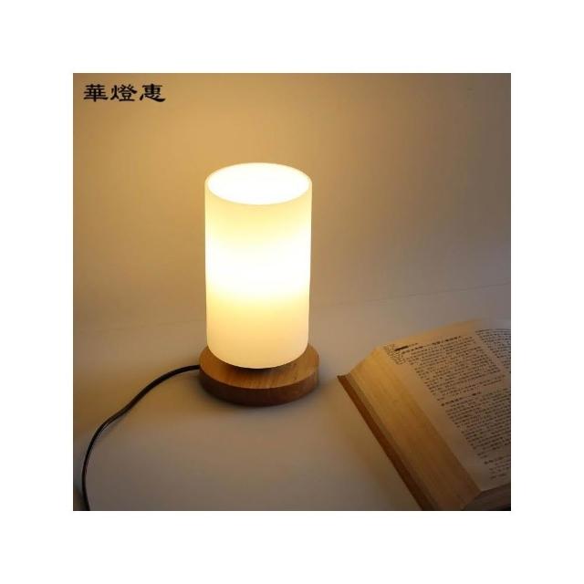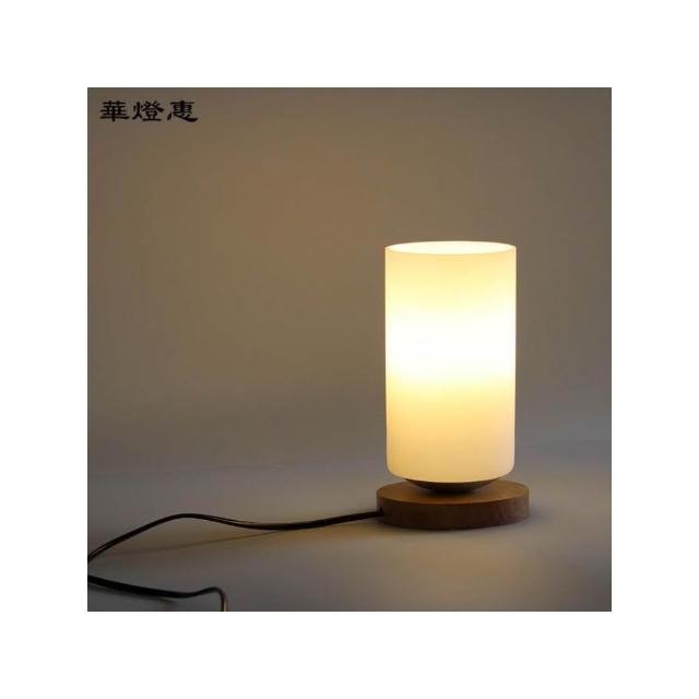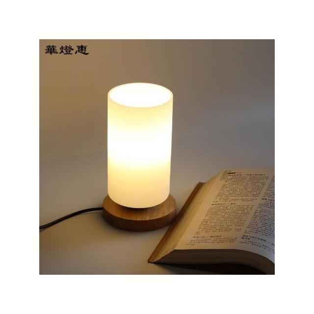 華燈惠 北歐簡約創意實木玻璃桌燈 檯燈 調光臥室床頭客廳書房電腦桌led小檯燈 圓柱形玻璃燈罩實木底座檯燈