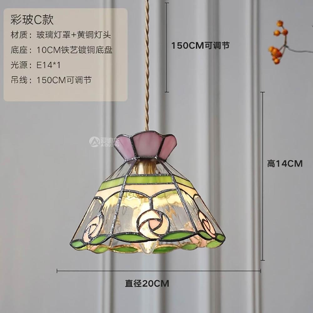 華燈惠 吊燈 復古 黃銅玻璃 北歐 餐廳 吊燈燈座 LED 錫燈美式風格床頭過道餐廳咖啡廳彩色玻璃小吊燈