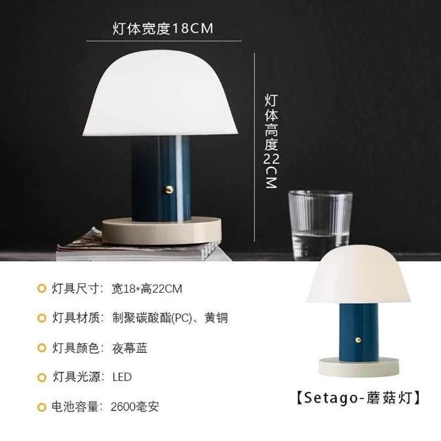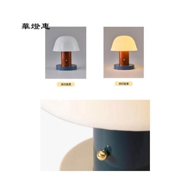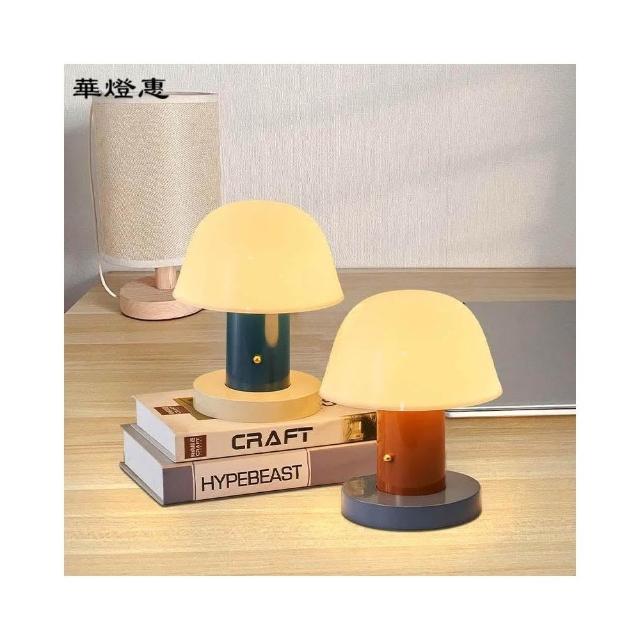 華燈惠 小夜燈 檯燈 丹麥蘑菇充電檯燈北歐充電裝潢可調光便攜氛圍小夜燈