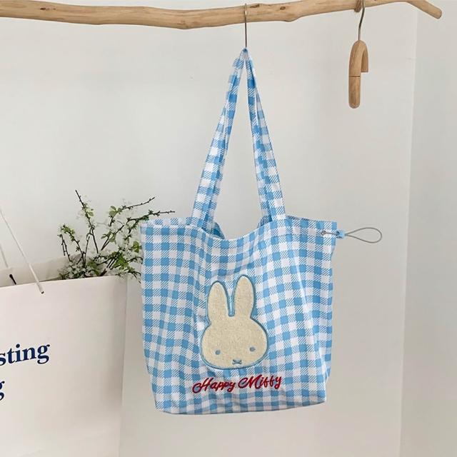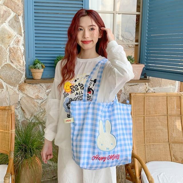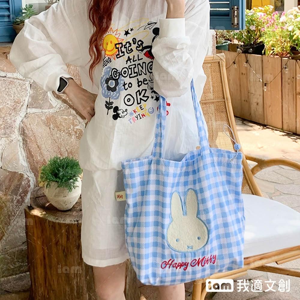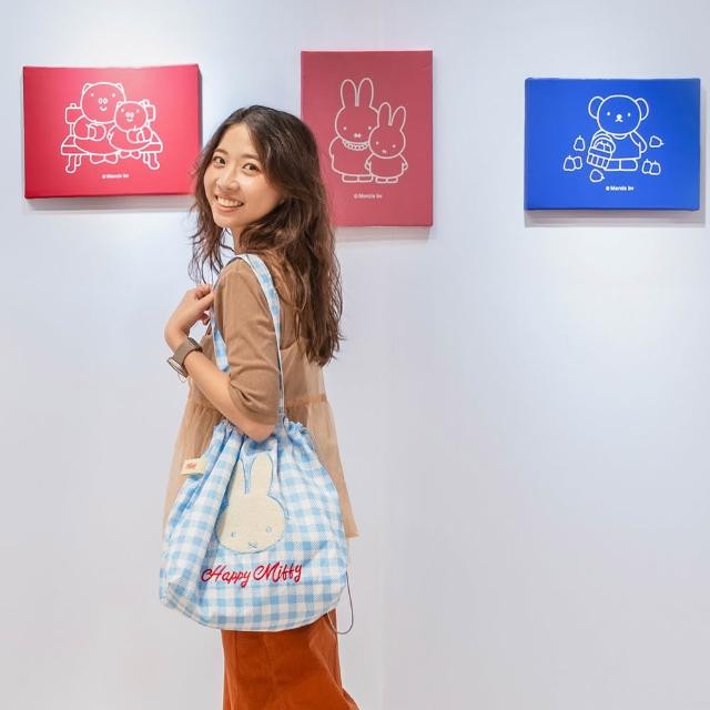 IAM我適文創 米飛 miffy 夏日 格紋 抽繩包 單肩包