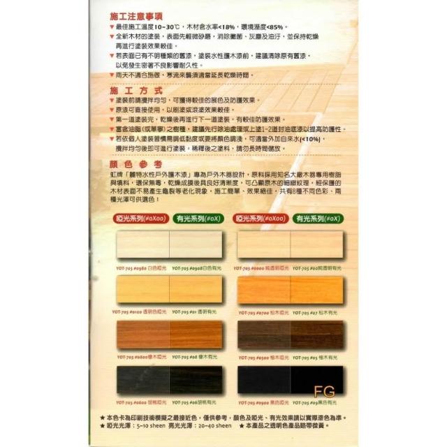 虹牌 YOT-705 麗特水性戶外護木漆 有光型 一公升裝 水性木器漆 #就是五金 塗料