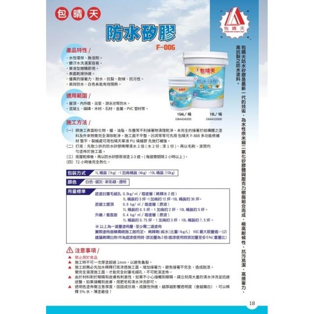 免運~包晴天 F-006 防水矽膠 新式防水膠 矽質防水膠 水性防水塗料 (一加侖裝) #就是五金 防水材