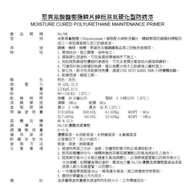 虹牌 700 聚異氰酸酯樹脂鱗片鋅粉濕氣硬化型防銹漆 鋅粉漆 #就是五金 虹牌油漆
