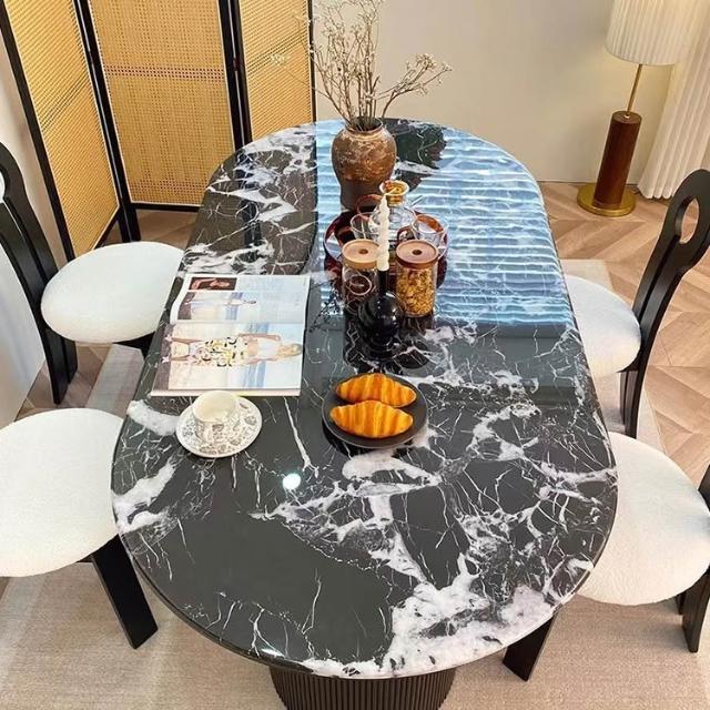 法式寶格莉天然大理石餐桌長方形岩板復古現代輕奢簡約橢圓餐桌椅