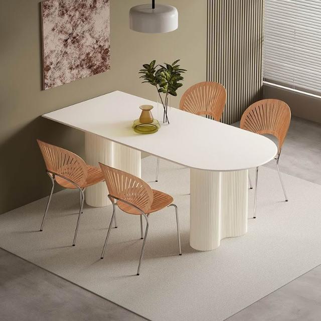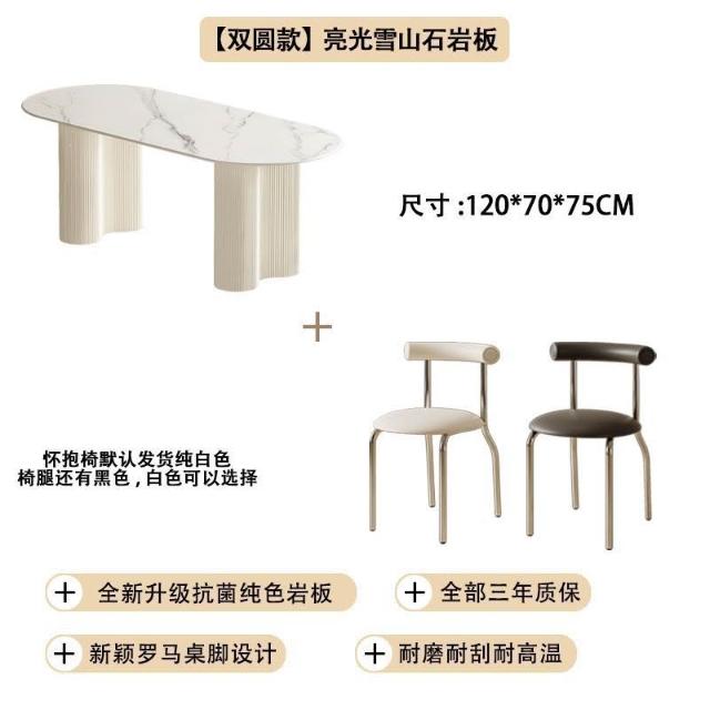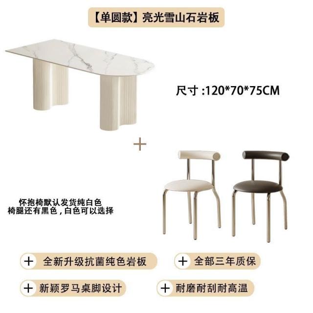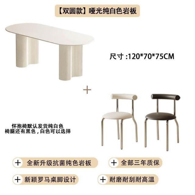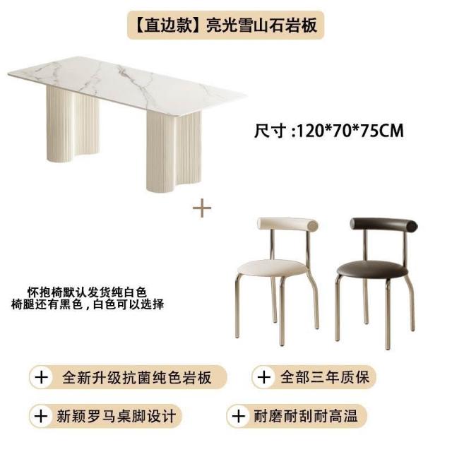 輕奢奶油風岩板餐桌椅組合家用小戶型現代簡約純白長方形吃飯桌子