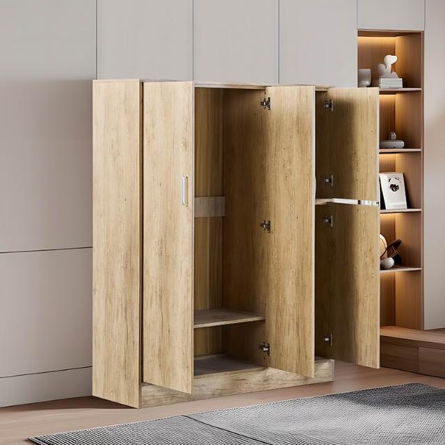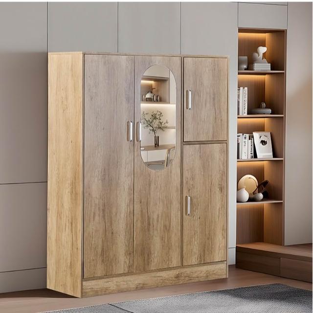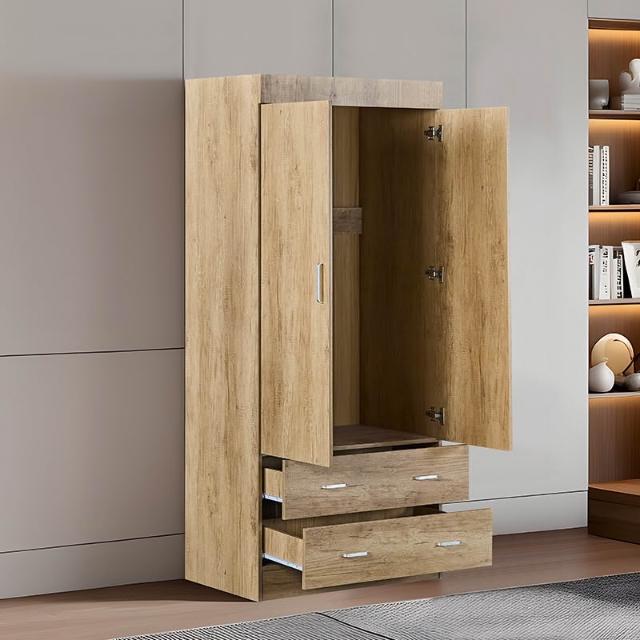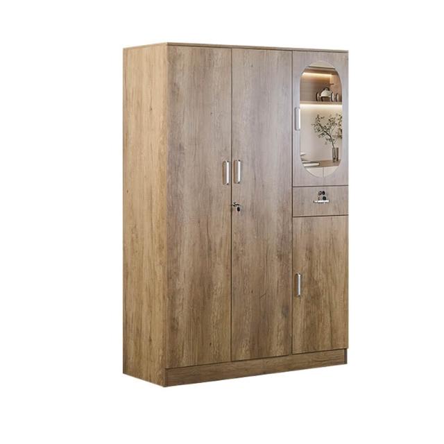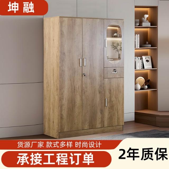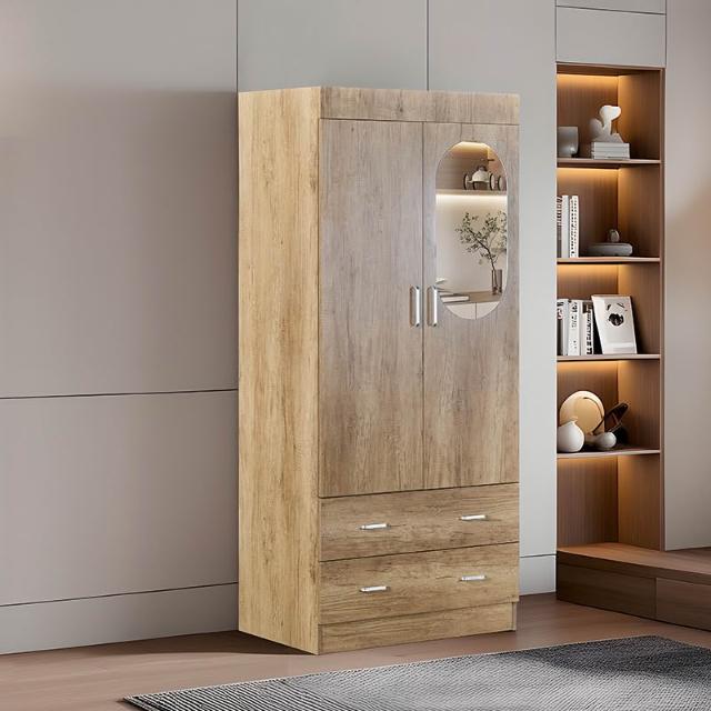 定制衣櫃家用臥室帶抽屜木色衣櫃簡約款帶鏡子雙開門儲物衣櫥批發