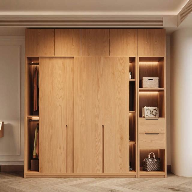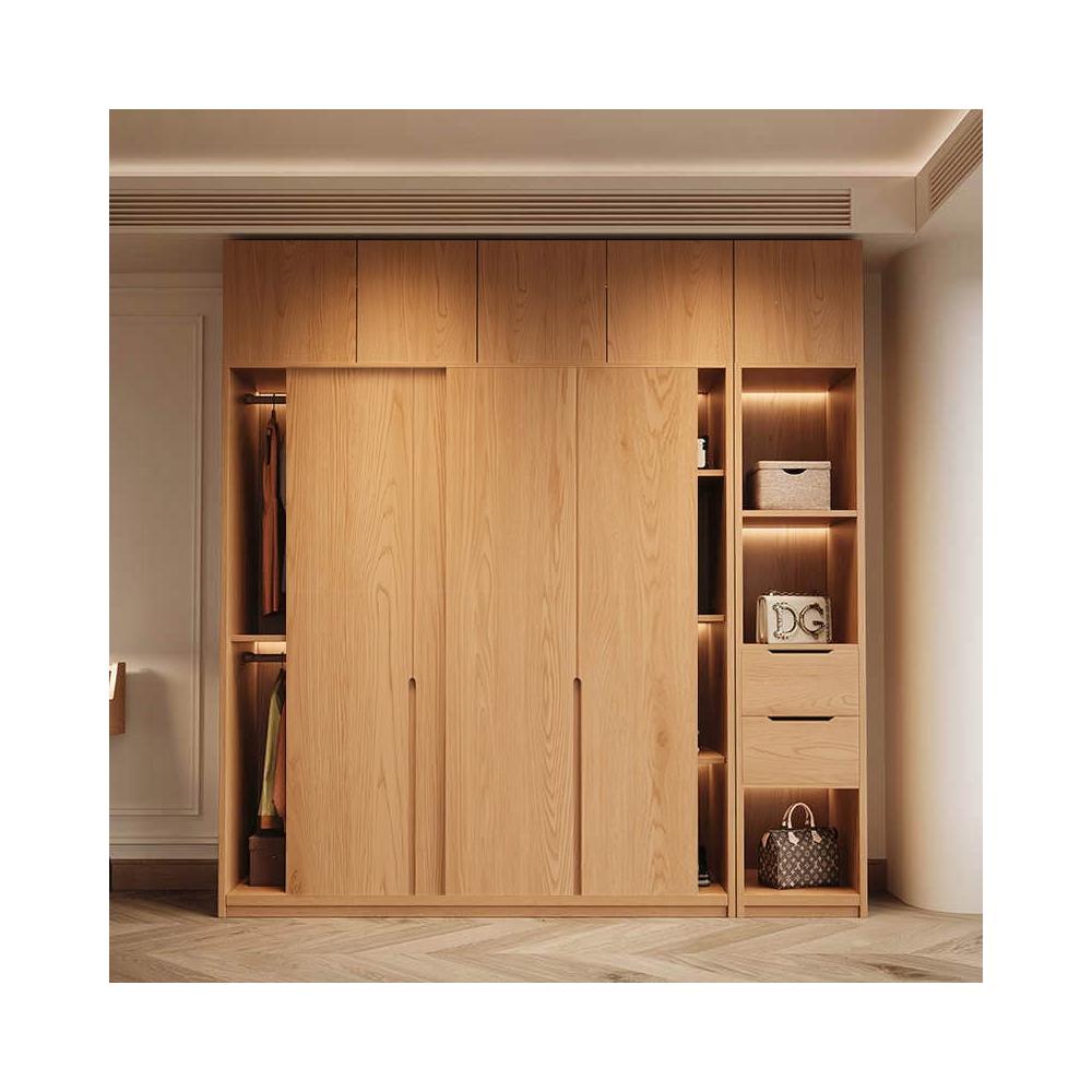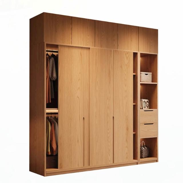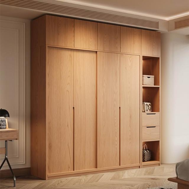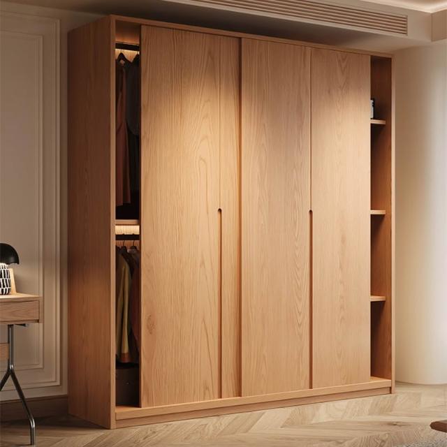 橡木衣櫃推拉門家用臥室滑移門收納櫃小戶型趟門儲物櫃衣櫃