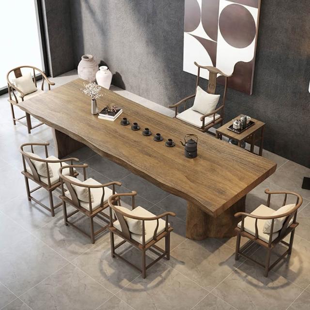 新中式實木茶桌全套客廳大板茶臺家用辦公室茶桌椅原木禪意泡茶桌