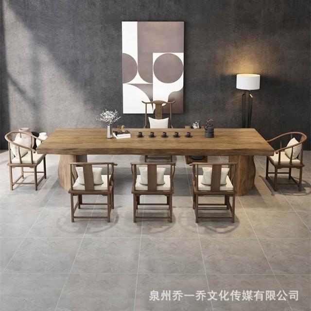 新中式實木茶桌全套客廳大板茶臺家用辦公室茶桌椅原木禪意泡茶桌