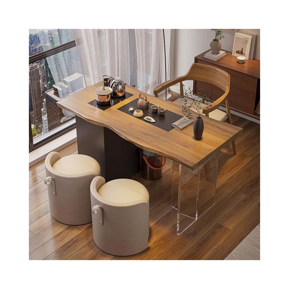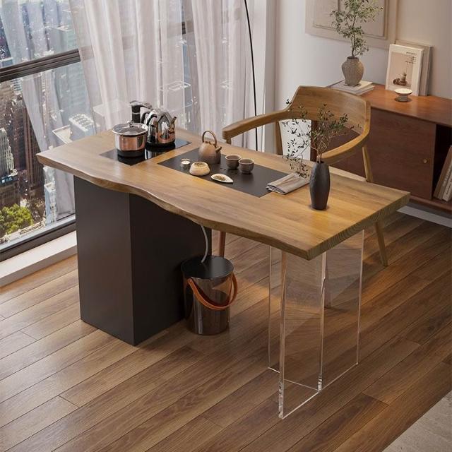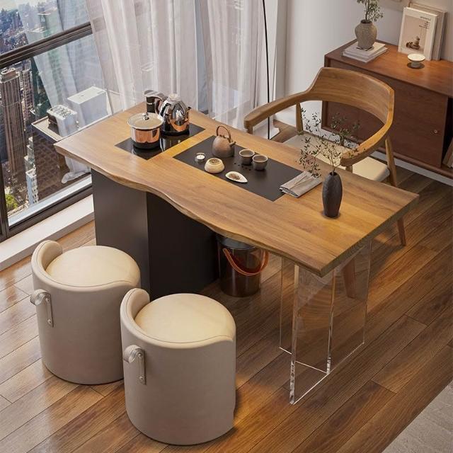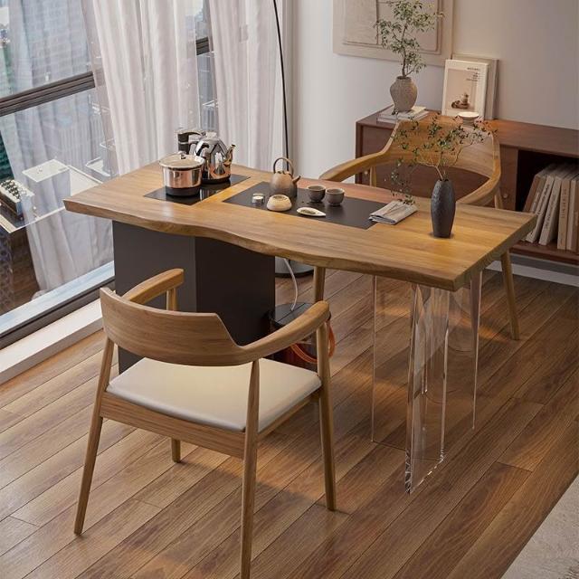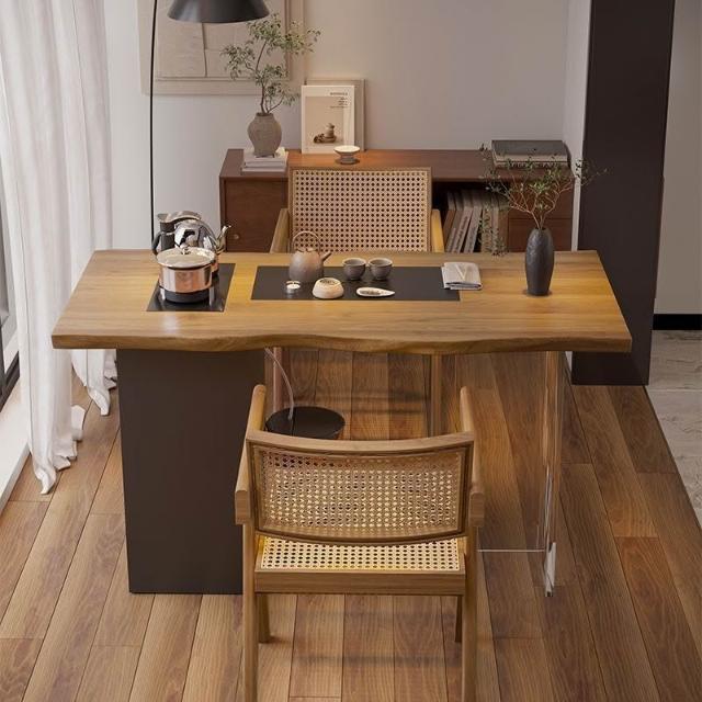 新中式實木茶桌簡約原木茶台辦公室陽臺茶桌椅客廳創意功夫泡茶桌
