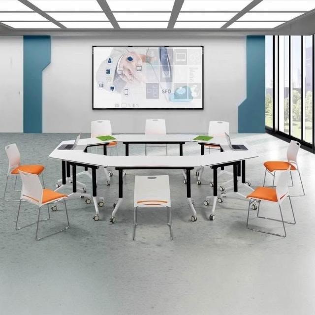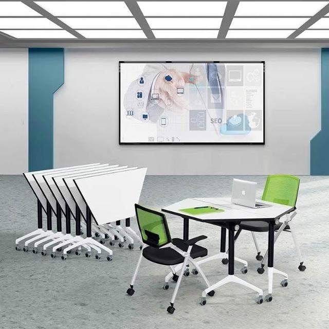 邁亞折疊培訓桌簡約辦公桌組合移動梯形會議長條拼接課桌椅六邊桌
